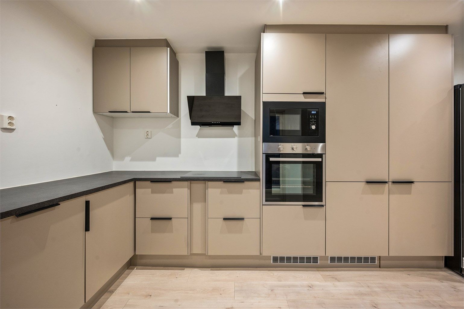 Moderne og lekkert kjøkken i åpen løsning med stue