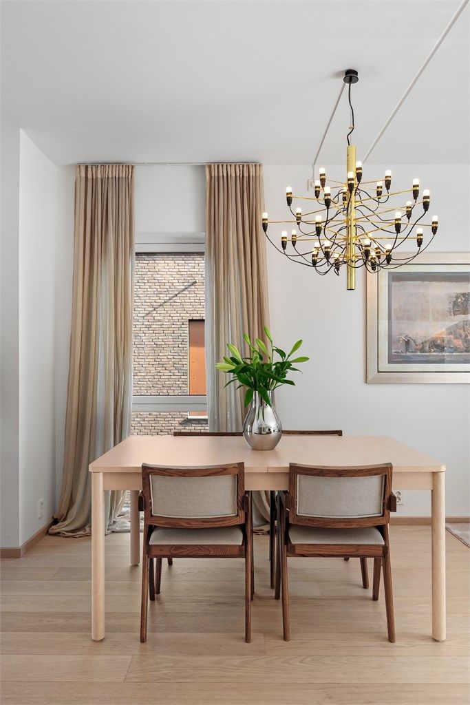 - Lysekroner, gardiner, bilder, speil og veggmontert TV.