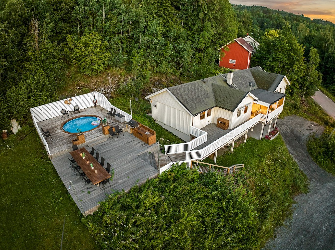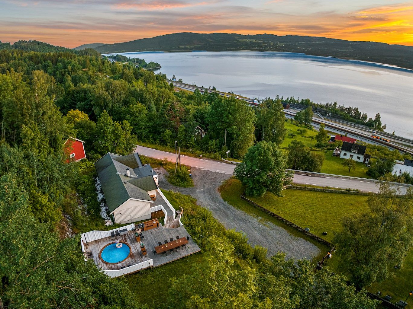 En innholdsrik enebolig beliggende høyt og fritt på en solrik tomt. Herfra er det nydelig, vidstrakt utsikt mot Mjøsa, noe som kan nytes fra hele flere utesoner. Stor platting med nedfelt basseng, samt utekjøkken hvor man kan invitere til festlige lag med venner og familie.