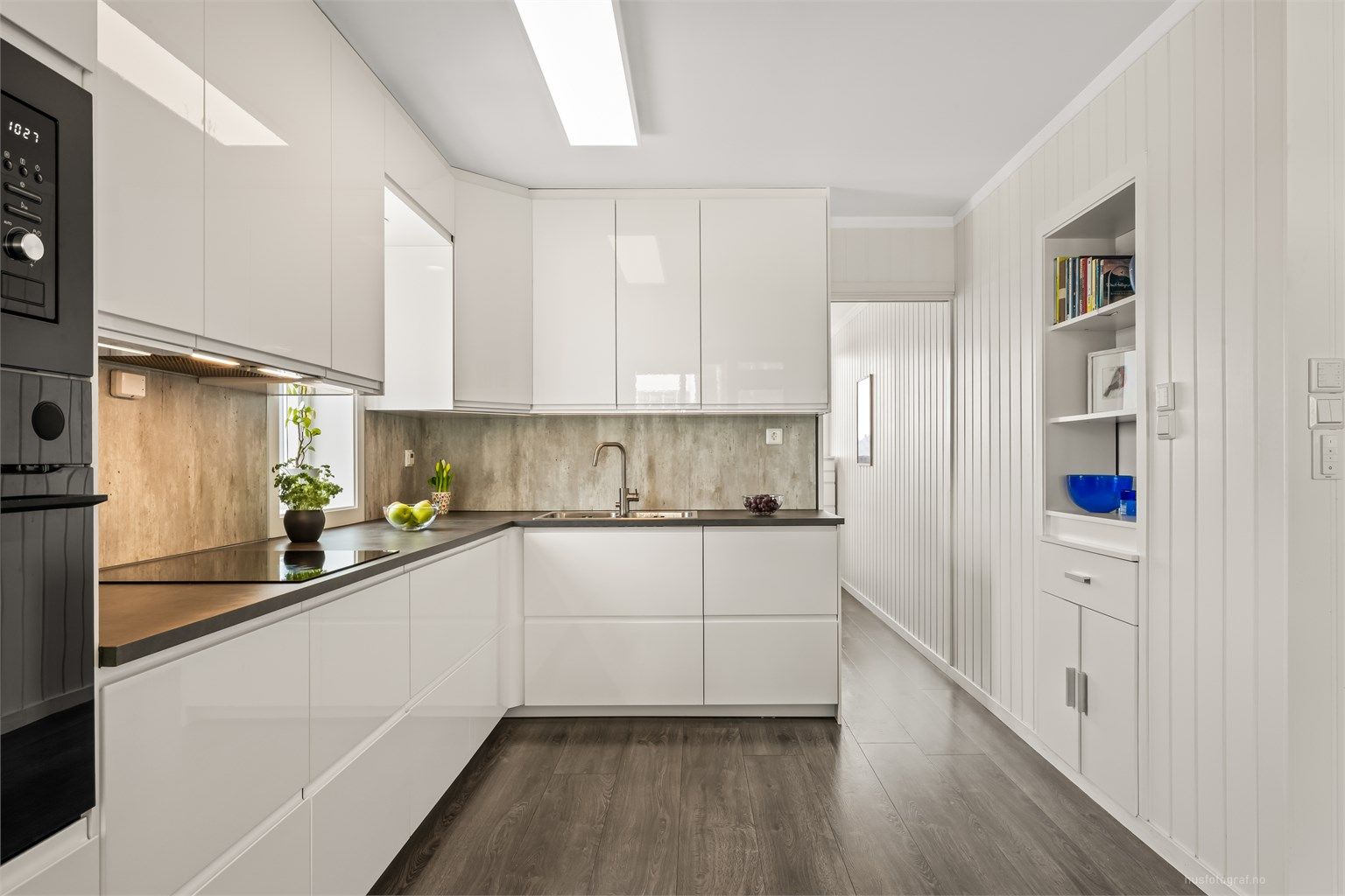 Stilren kjøkkeninnredning fra 2021 med helintegrerte hvitevarer