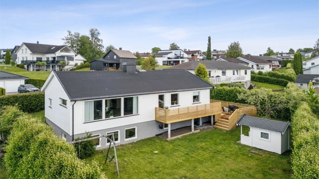 Flott enebolig over 2 plan med gjennomgående moderne standard. 1. etasje med alle rom på ett plan herunder 2 soverom, baderom, stue og kjøkken. Stort og godt arbeidskjøkken med mye skap- og benkeplass, samt fin tilknytning til sone for møblering av spisestue. Det er gode lysforhold med innslipp av mye naturlig lys. Fra stue er det adkomst til terrasse og videre til hagen som er skjermet for innsyn. Kjeller med stue (eventuelt soverom 2), soverom, baderom, vaskerom og flere boder som gir plass for oppbevaring. Parkering i dobbelgarasje og ellers plass til øvrig parkering på tomten. Kort vei til barnehage, skoler og matbutikk.