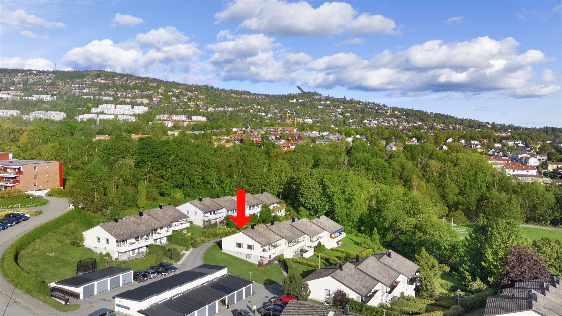 Her bor du i et enderekkehus over to plan, i et barnevennlig og rolig område med marka rett utenfor døren. Boligen har en praktisk og familievennlig planløsning og inneholder bl.a.: