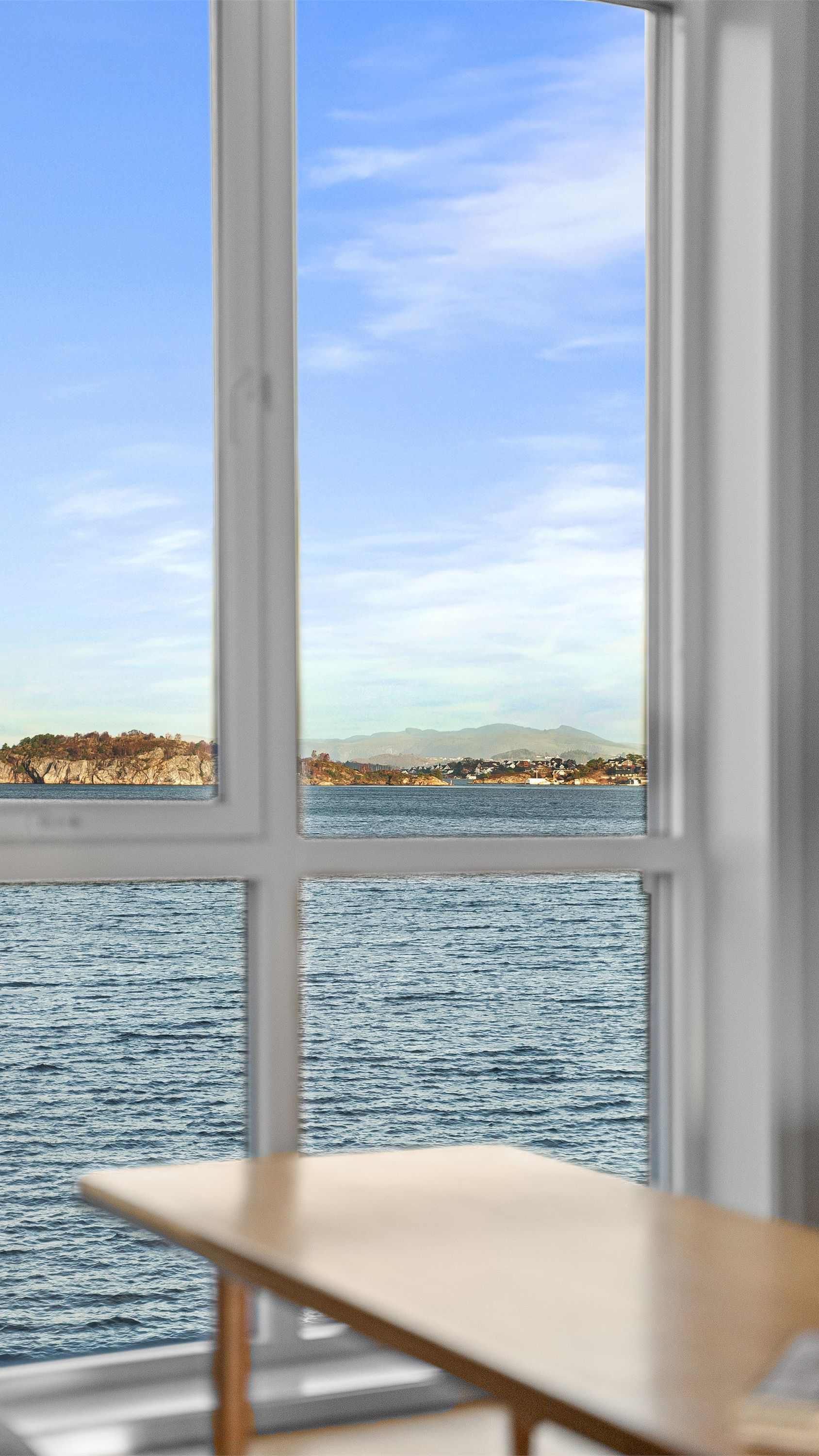 Plassert i byggets 3. etasje mot sjøsiden og helt i front, så får nydelig utsikt hele døgnet. Her kan man senke roen og nyte fjor, fjell og det maritime livet utenfor.