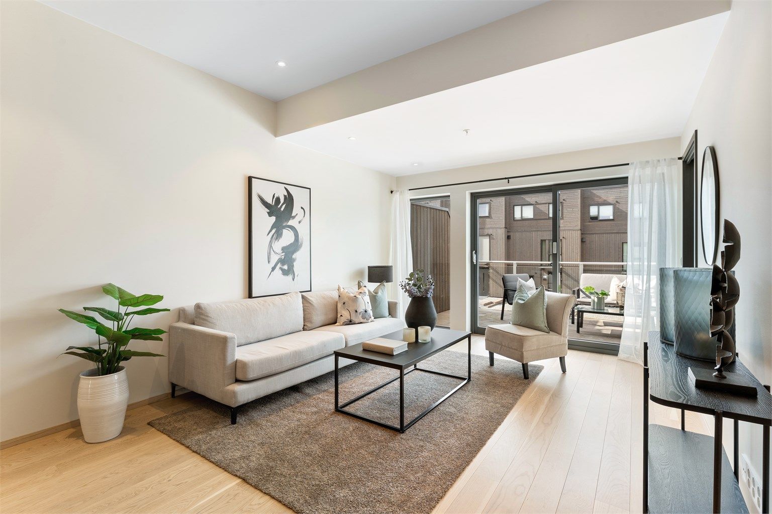 Moderne og lekker 3-roms selveier (2023) med stor vestvendt balkong på 14 m² | Heis og garasjeplass | Flytt rett inn!