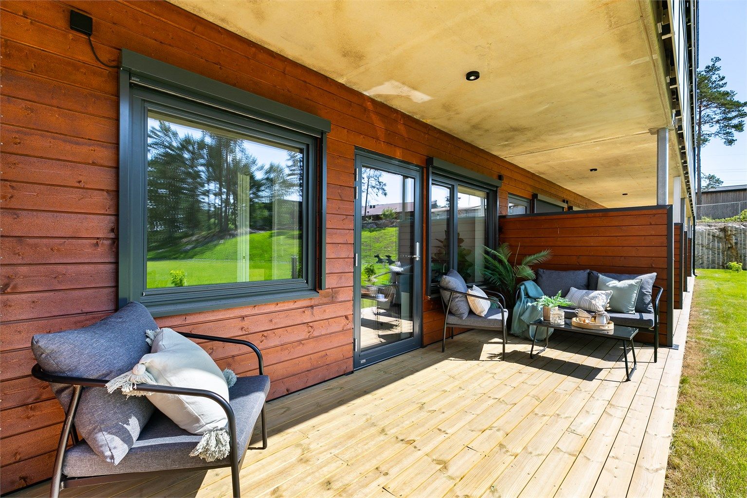 Helt ny og innflyttingsklar 3-roms, ferdigstilt mai 2024. Lett tilgjengelig på bakkeplan. Vestvendt terrasse. Garasje.