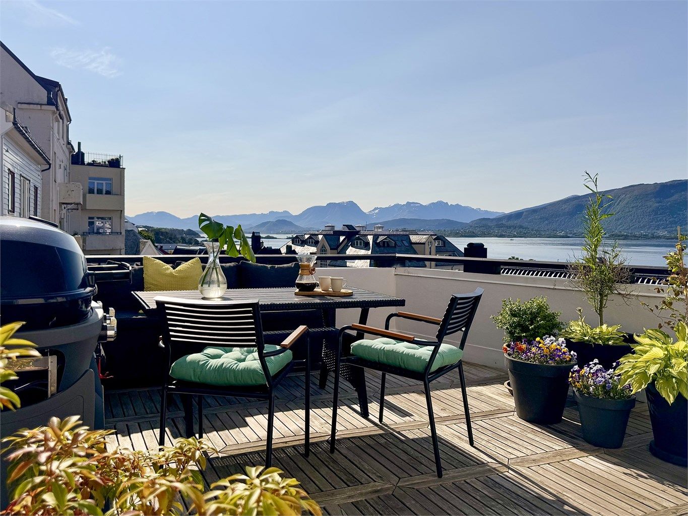 * Praktfull utsikt mot Sunnmørsalpene og Borgundfjorden