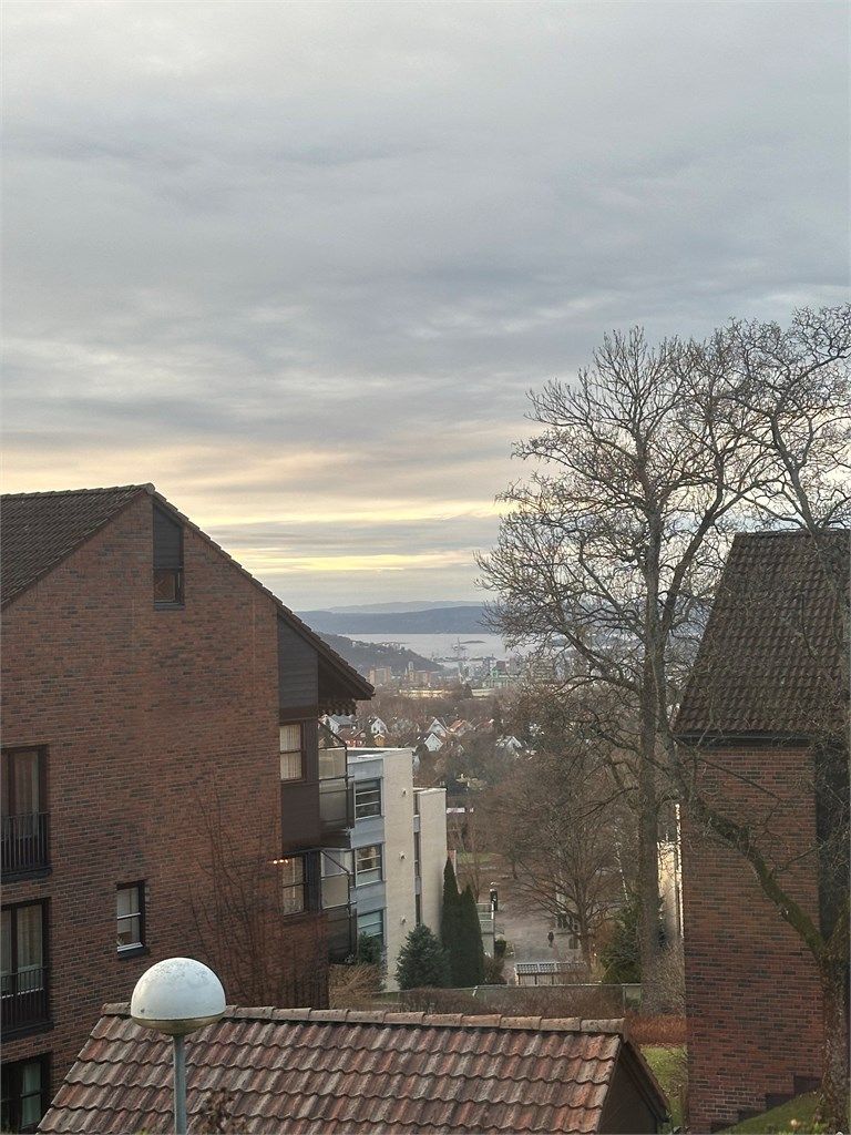 Meget pen 3-roms m/solrik balkong, flott utsikt, usjenert beliggehet og trappefri adkomst! Mulig å kjøpe carport med lader til elbil*