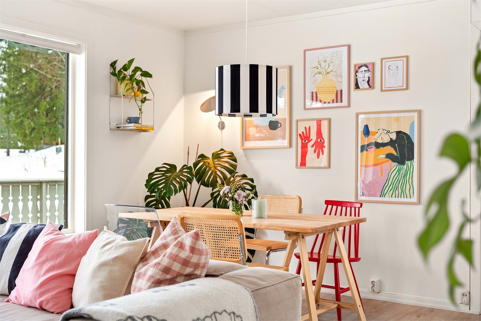 > Åpnet vegg fra kjøkken til stue.