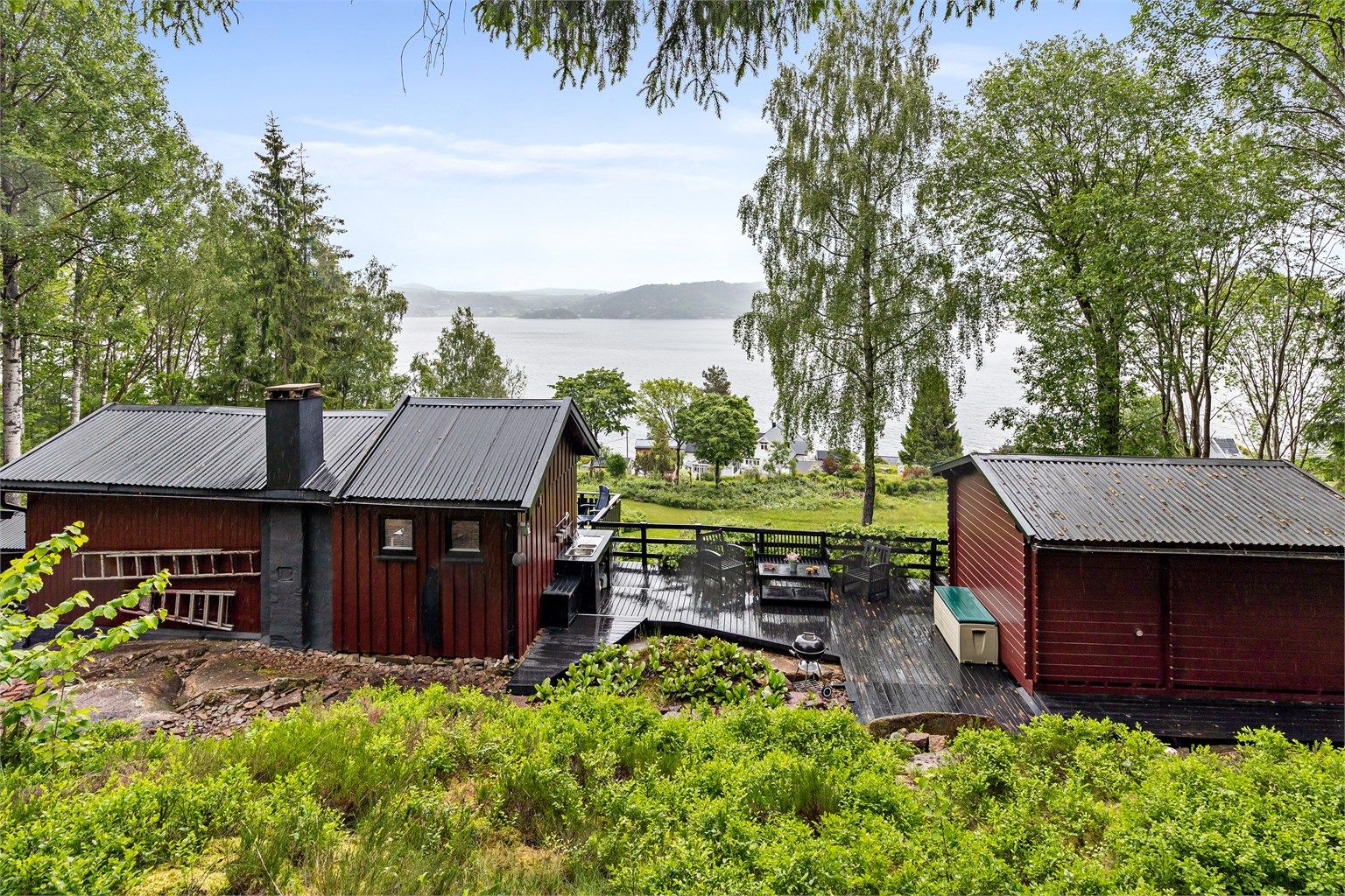 Pen sommerhytte med en usjenert beliggenhet øverst på feltet. Suveren fjordutsikt. Omkranset av naturskjønne omgivelser.