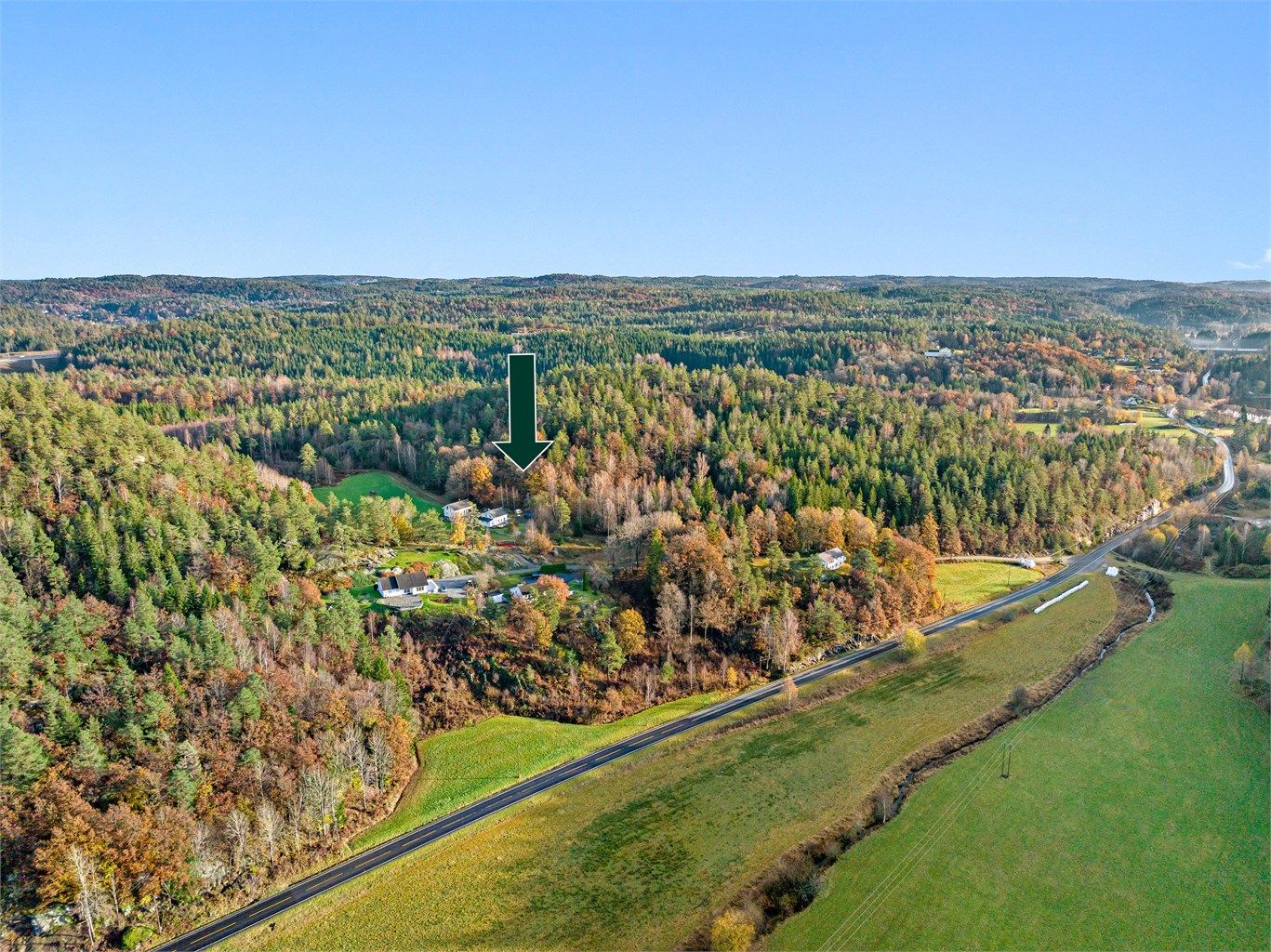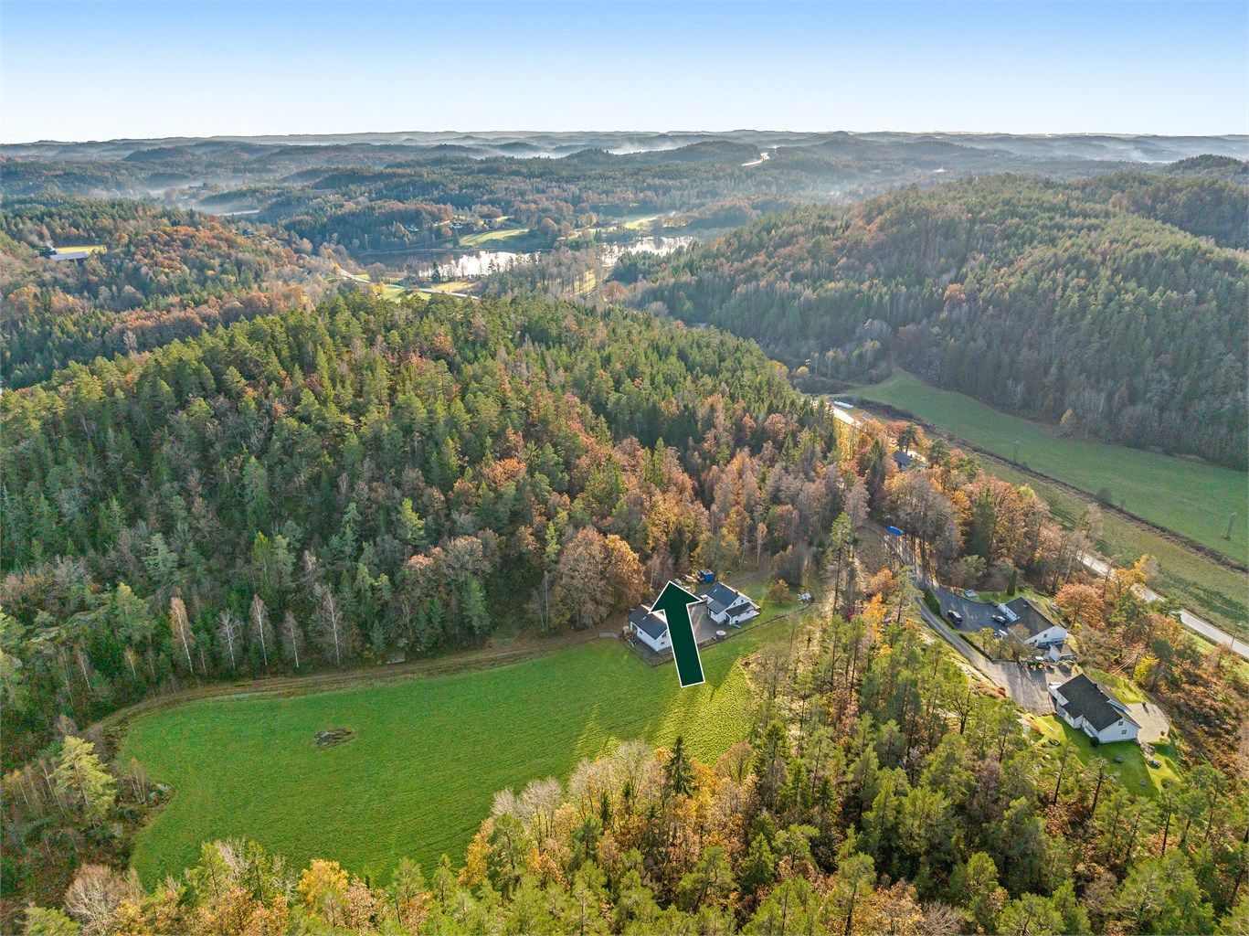Tomten ligger fint til i landlige omgivelser. Det er fine turveier og ca. 10 minutter inn til sentrum fra tomten.