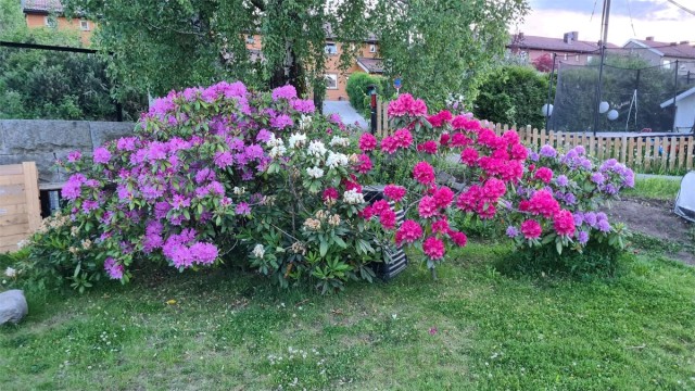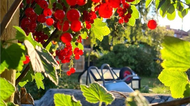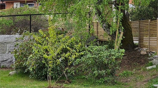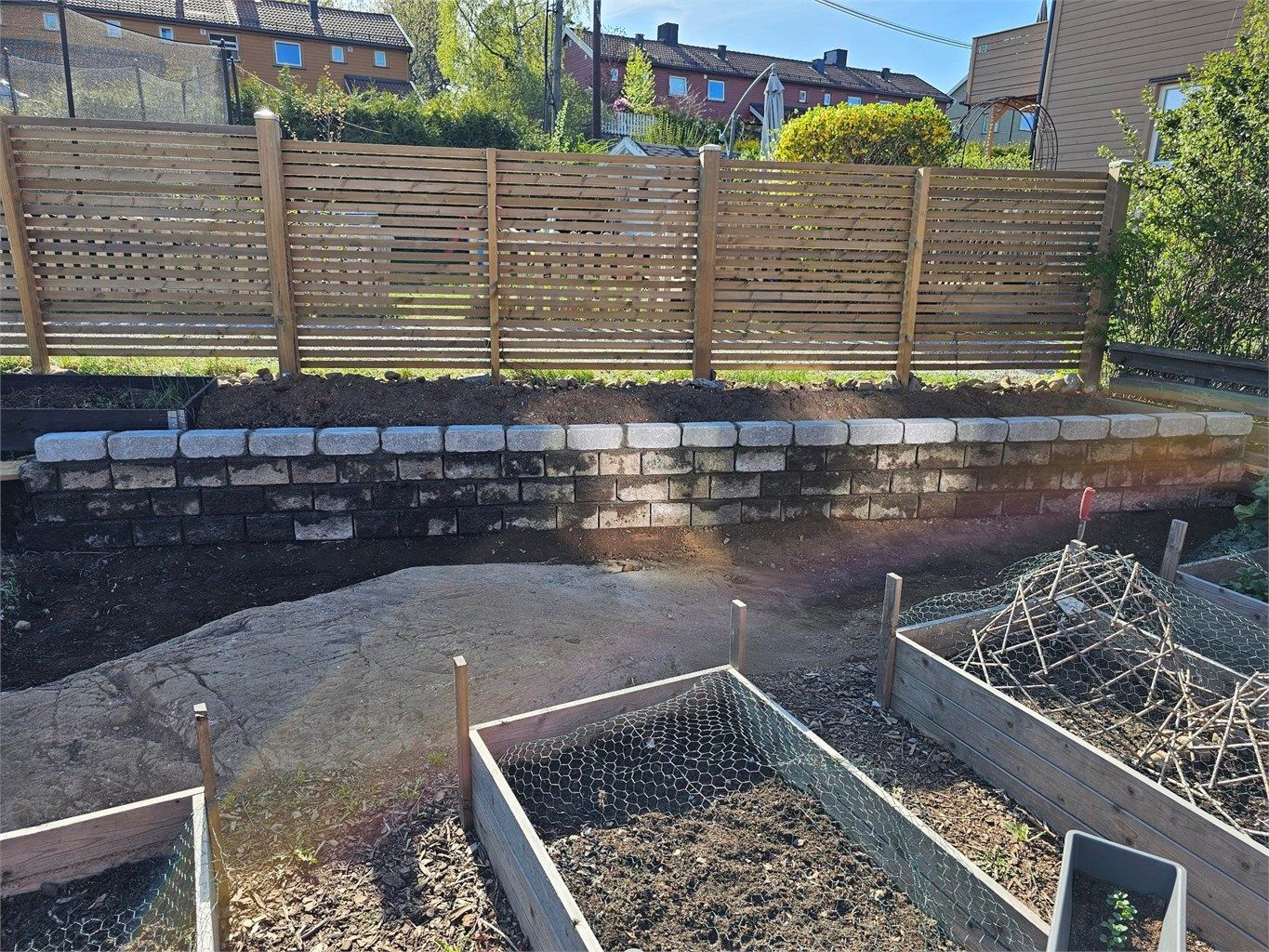 Nydelig, stor hage med rom for både grønnsaker og prydbusker. Her vokser flere typer rododendron, iriser og hostaer, og vi har gledet oss over å kunne dyrke både stort og smått i vår lille åker og i plantekasser, samt lage saft og syltetøy av bær og rabarbra som vokser i stadig større omfang. Ikke minst hyggelige og imøtekommende naboer. Boligen ligger nær alle fasiliteter på Tangen, og et bredt og godt kollektivtilbud både lokalt og til byen. Gåavstand til båten om man ønsker å rusle heller enn å ta buss. Det er heller ikke langt fra skog og mark, både for kortere turer rundt Skoklefalltjernet, men også gåavstand til marka og lysløypen.