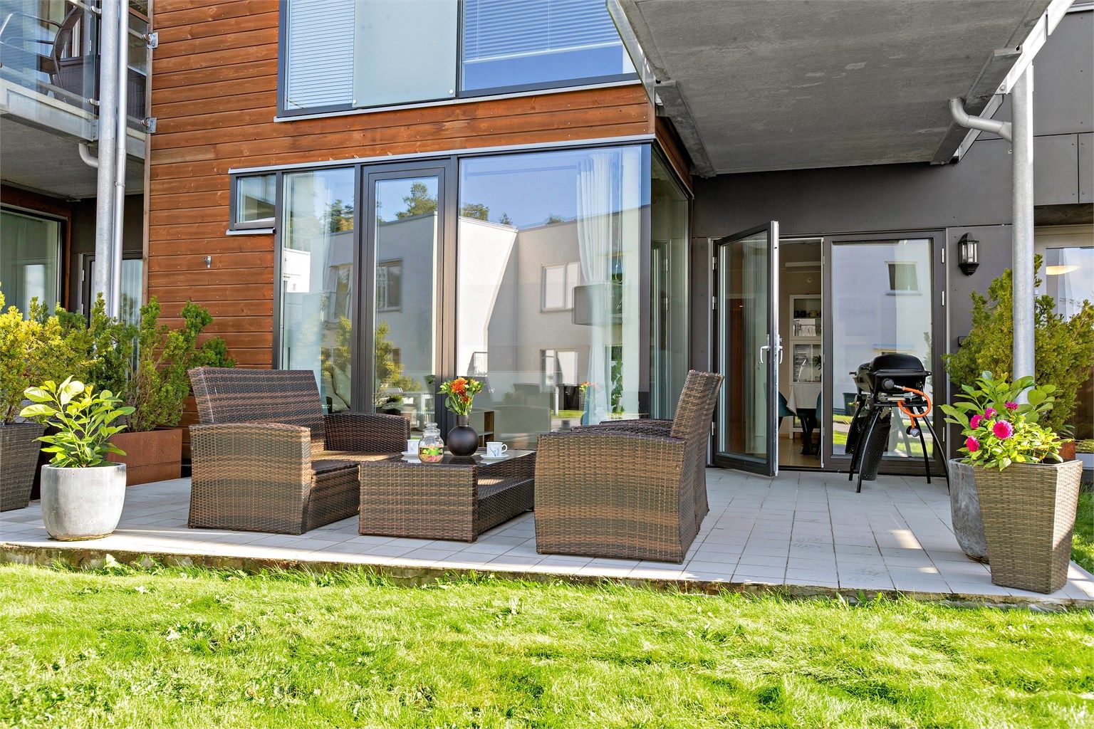 Leiligheten ligger i 1. etasje med trappefri adkomst og en funksjonell planløsning. Det er vannbåren gulvvarme, samt balansert ventilasjon med ventiler i alle rom, noe som gir et behagelig inneklima. Gulvene har énstavs eikeparkett i alle rom, utenom bad. Stor solrik uteplass.