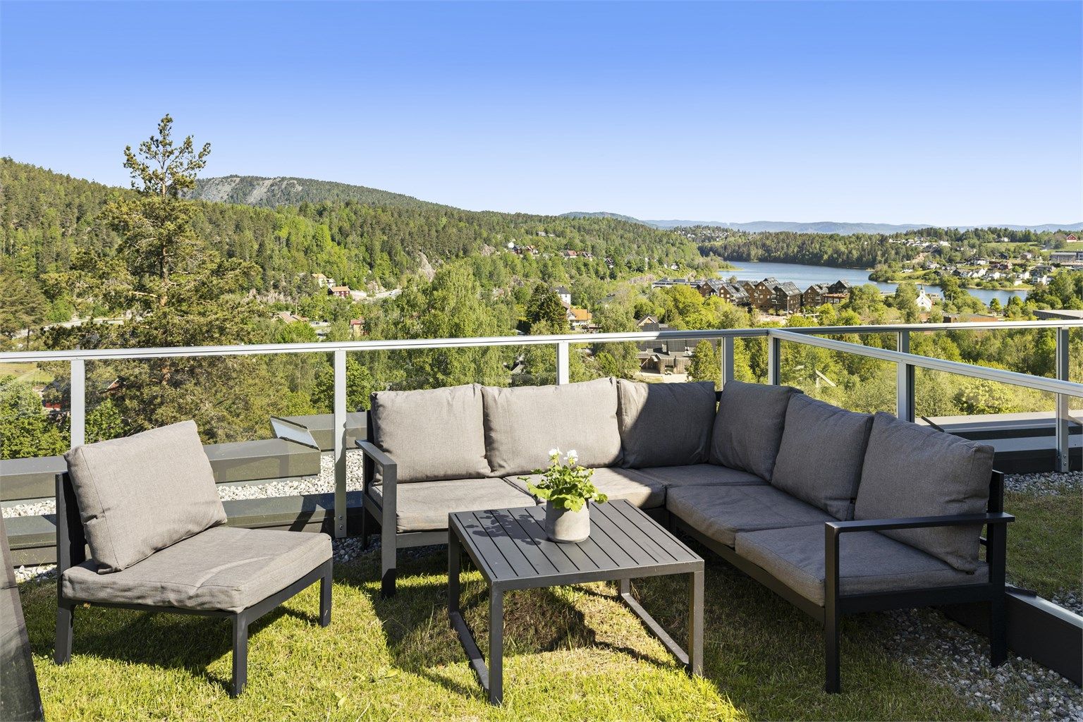 Stilrent enderekkehus med solrik takterrasse og flott utsikt. 2 garasjeplasser. Attraktive tilvalg og god planløsning.
