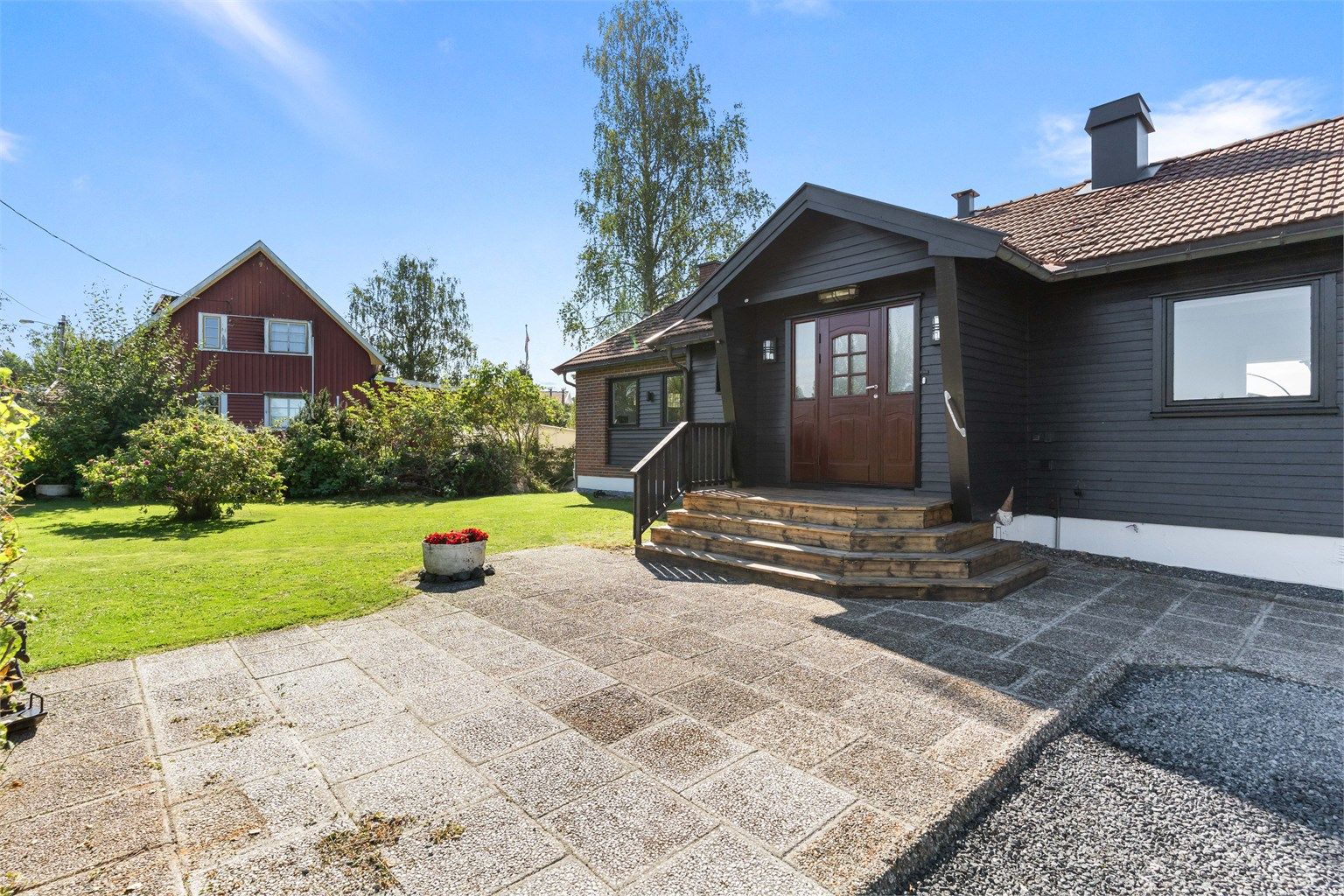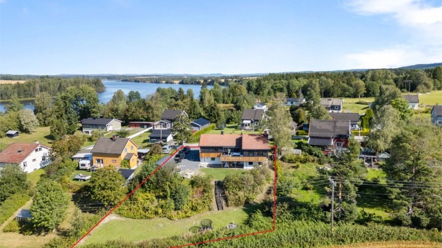 Uteområdet byr på stor boltreplass med både hage og terrasse, omgitt av vakre omgivelser. Eiendommen har også rikelig med biloppstillingsplasser på gruset gårdsplass.