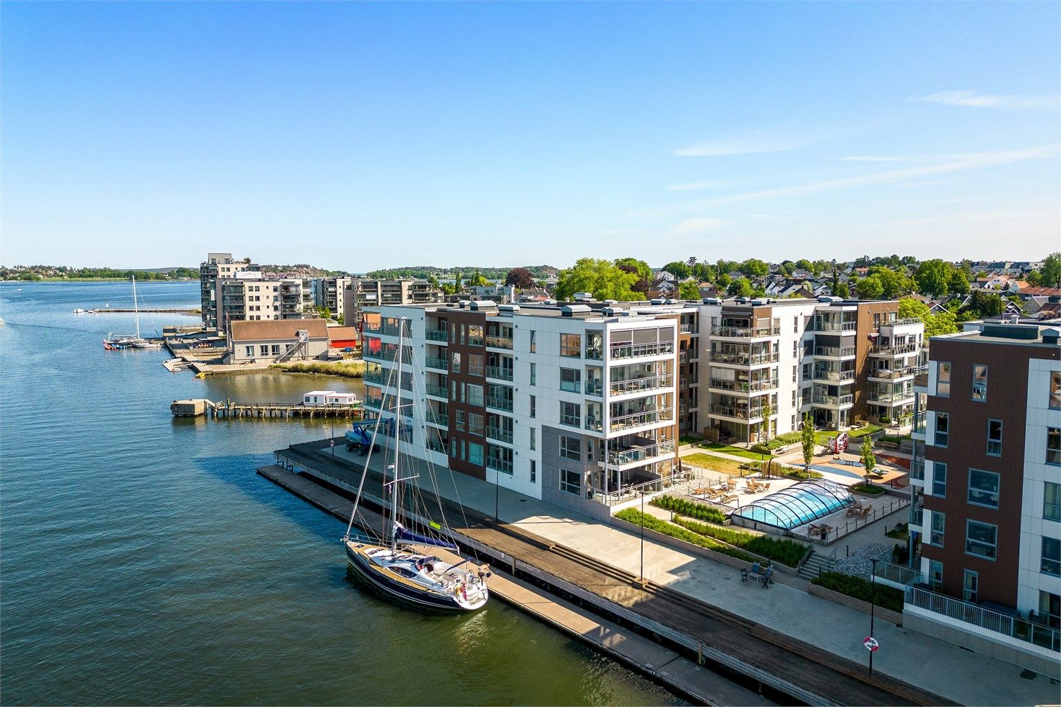 Leilighet beliggende flott og rolig til i 3 etasje med sjøutsikt på Ørsnes / Tønsberg - nærhet til både by og sjø. Leiligheten er velholdt med god standard og har en smart planløsning. Det er gang, bad/vaskerom, stue/kjøkken, 2 soverom, walk-in closet og bad. Fra stuen har du adkomst til en superfin balkong hvor fjordutsikten kan nytes. Her bor du i hyggelige omgivelser med pent opparbeidede fellesarealer med basseng (brukes sommerhalvåret), utedusj og lekeplass. Tilhørende følger parkeringsplass m/ lader og bod i felles garasjekjeller. Det er heisadkomst fra garasjekjeller og opp til leiligheten.