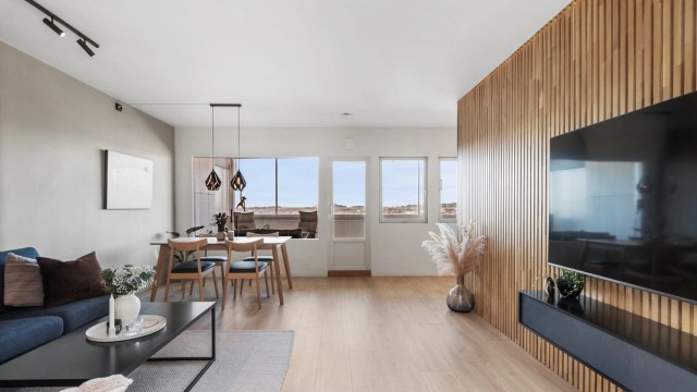 Gjennomført og stilfullt i 15.etasje. |Høy standard med panorama utsikt mot fjorden. |Nytt bad 2024 |Nydelige solforhold