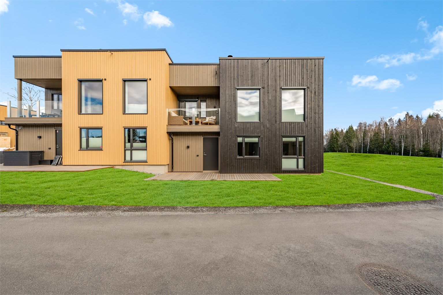 Velkommen til en moderne, påkostet og innbydende tomannsbolig fra 2023/24, perfekt tilpasset familielivet! Her får du en oppgradert standard med en smart og romslig planløsning over to etasjer. Den åpne kjøkken- og spisestueløsningen skaper en sosial atmosfære, mens fire soverom, to bad og eget vaskerom sikrer komfort for hele familien.