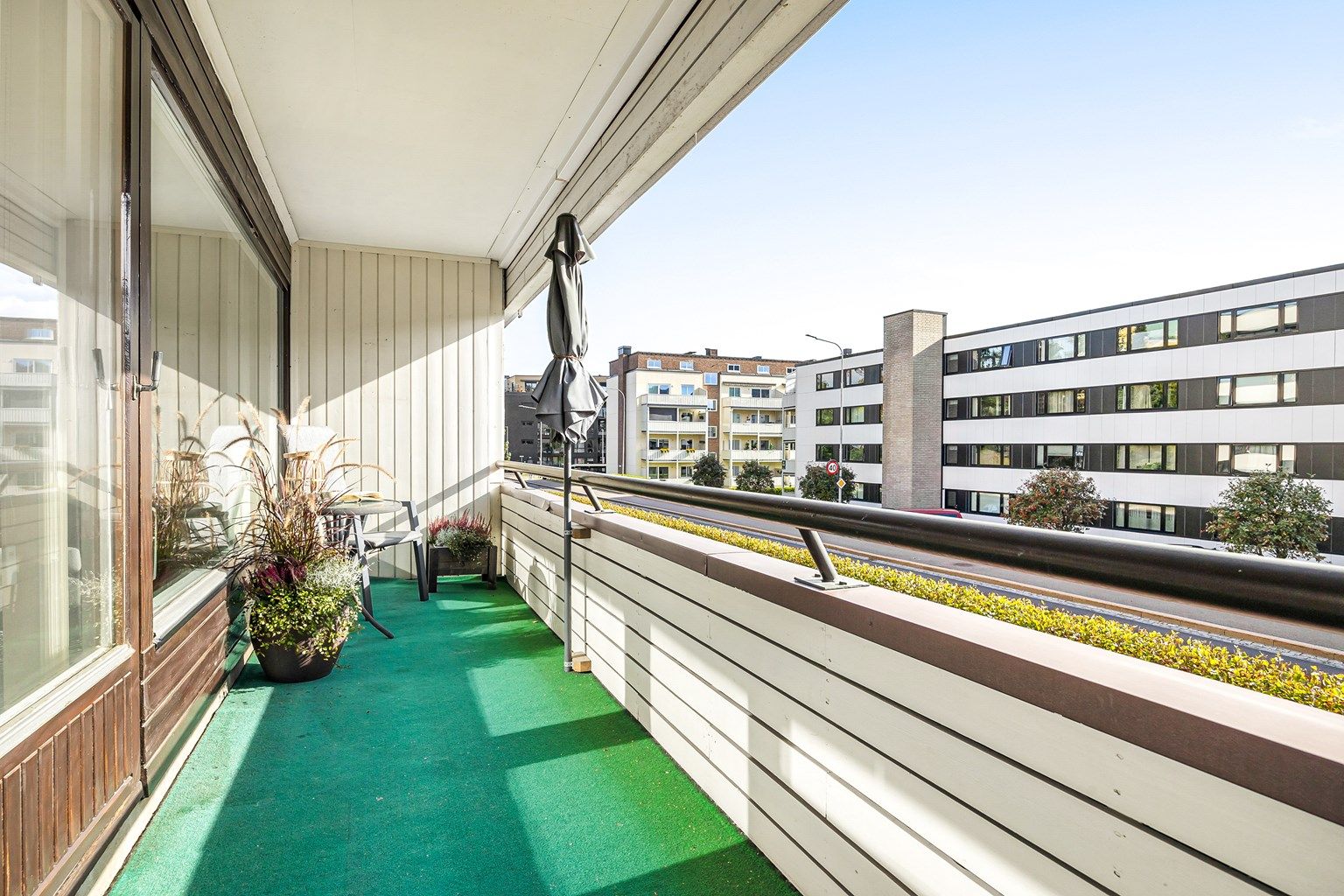 Leiligheten ligger tilbaketrukket fra sentrum mot enden av Engene, med en sørvendt balkong. Leiligheten er lys og pen, med en gjennomgående god standard fra renovering i 2007. Badet er av eldre utførelse. Leiligheten har store rom, hvor tilsvarende leiligheter har etablert et ekstra soverom i stue.