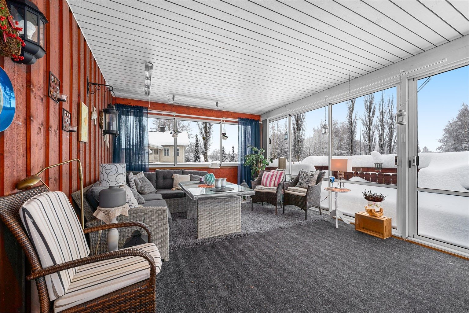 I 1. etasje finner du to soverom, omkledningsrom, bad, et romslig kjøkken og stor stue med god plass til både sofagruppe og spisestue. Utgang til innglasset veranda med gode solforhold.