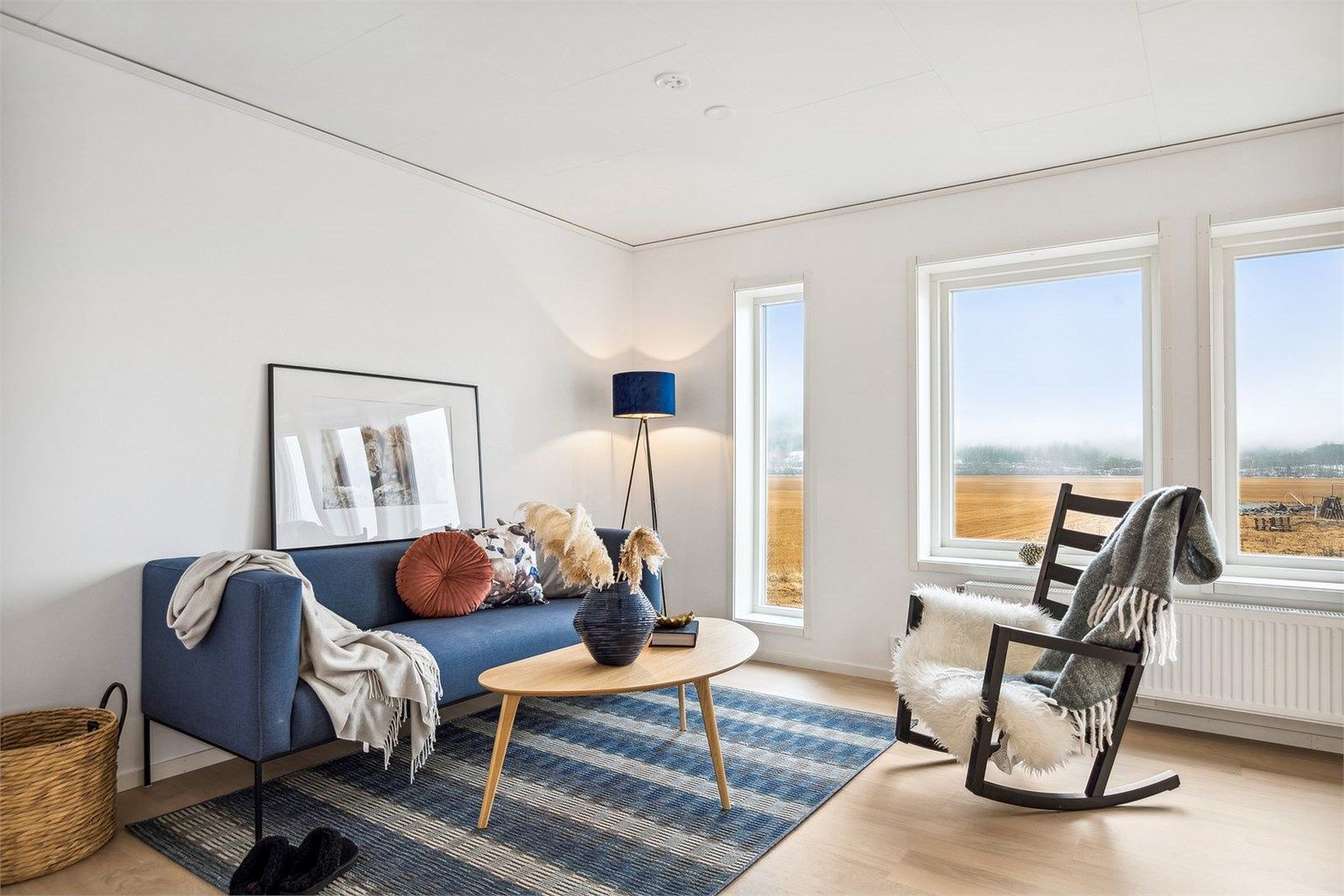 Åpen og romslig stue med muligheter til å innrede etter ønske, de store vindusflatene tilfører rikelig med sollys som skaper en god atmosfære.