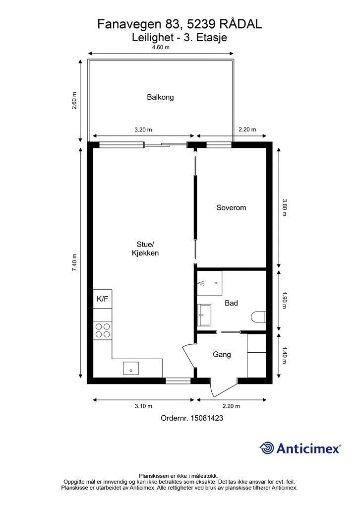 Vedlagte plantegninger er ikke målbare. De oppgitte arealer er hentet fra rapport med befaringsdato 20.04.2026 utført av Atle Simon Kallestad.