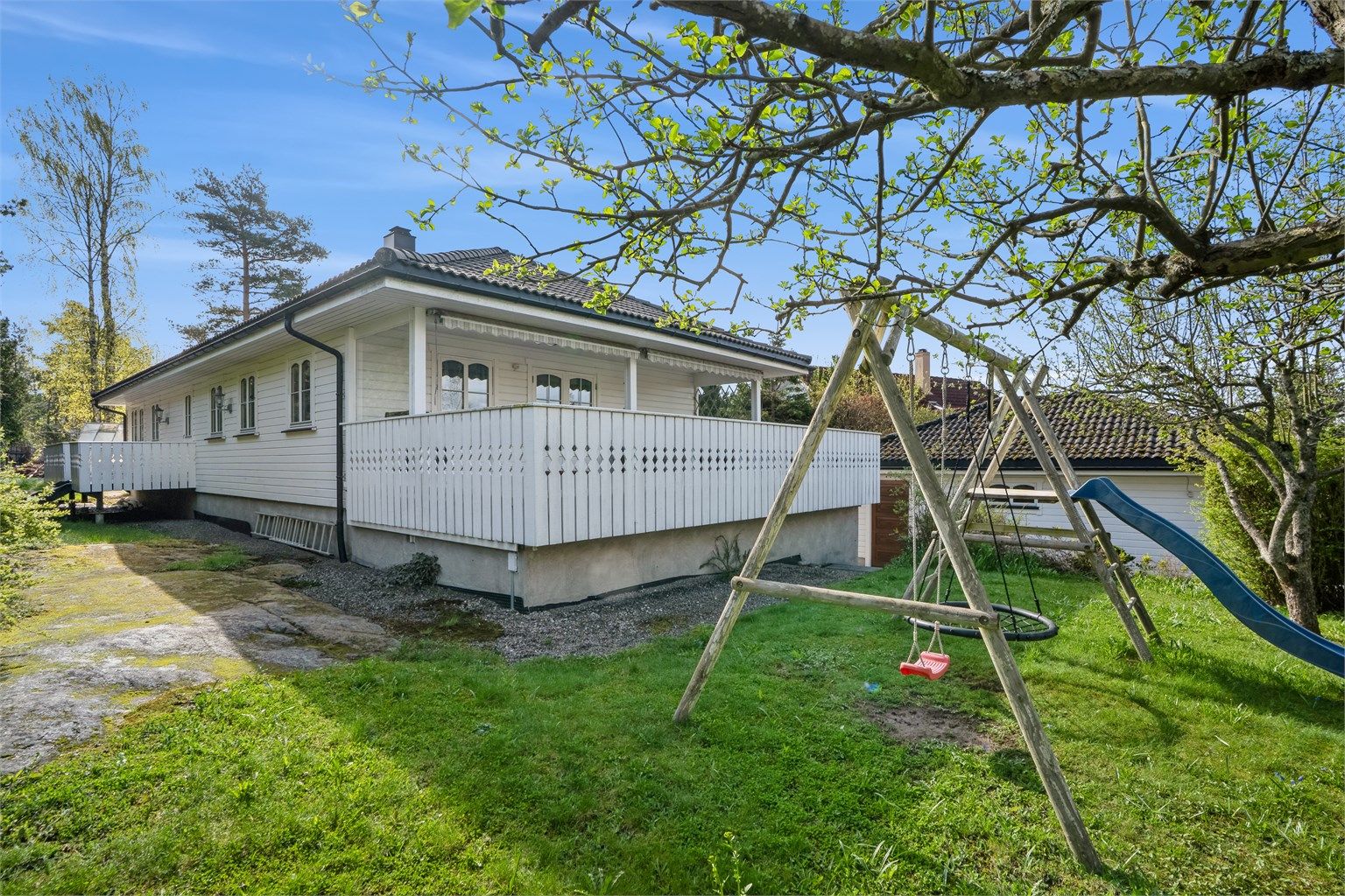 Boligen er romslig og passer for familier med barn, eller bare livsnytere og de som er glade i "slow living". Uteområdet er romslig og er skjermet med høy tuja hekk. Hagen har to epletrær som gir saftige norske epler om høsten, og et plommetre som gir rikelig med plommer. Syrintrær på baksiden av huset sprer sin aroma i hagen om sommeren. Elektrisk gressklipper tar seg av plenen slik at man kan nyte lange sommerdager ute på terrassen eller ta seg en gåtur til stranda. Det er en båtplass til salgs dersom interessant. Boligen ligger sentralt på Fagerstrand med treningssenter rett over hovedveien, to matbutikker i gåavstand, bussholdeplass 1-2 minutter unna og gåavstand til barnehager og skole.