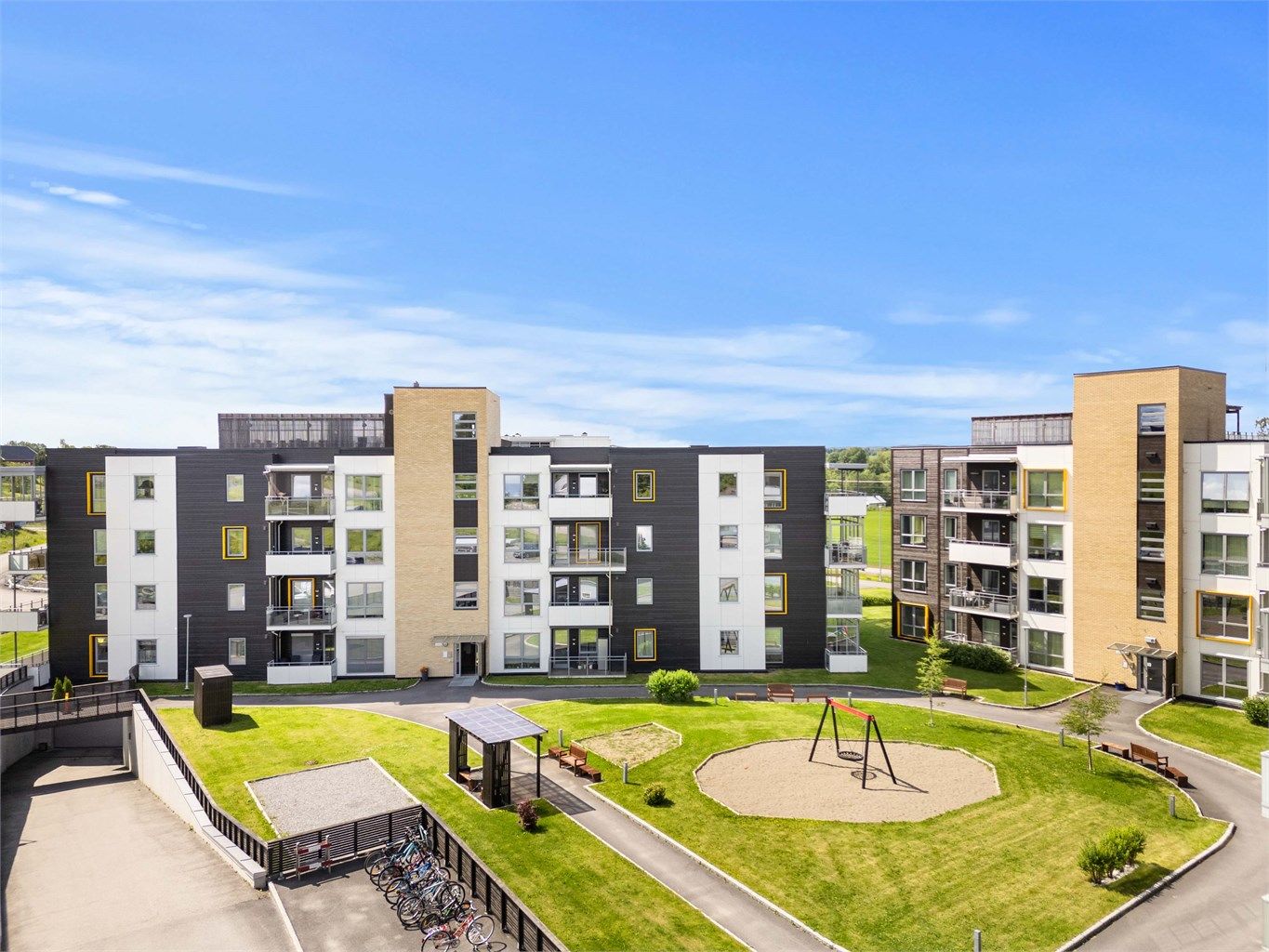 Boligen holder en gjennomgående moderne standard med fjernvarme og vannbåren gulvvarme på badet. Det medfølger egen parkeringsplass i oppvarmet garasjekjeller, og beboerne har tilgang til en flott felles takterrasse. Beliggenheten er svært sentral med kort vei til Årnes stasjon, sentrum, butikker, skole og barnehage. Dette er en lettstelt og attraktiv bolig som passer like godt for par, små familier som for godt voksne.