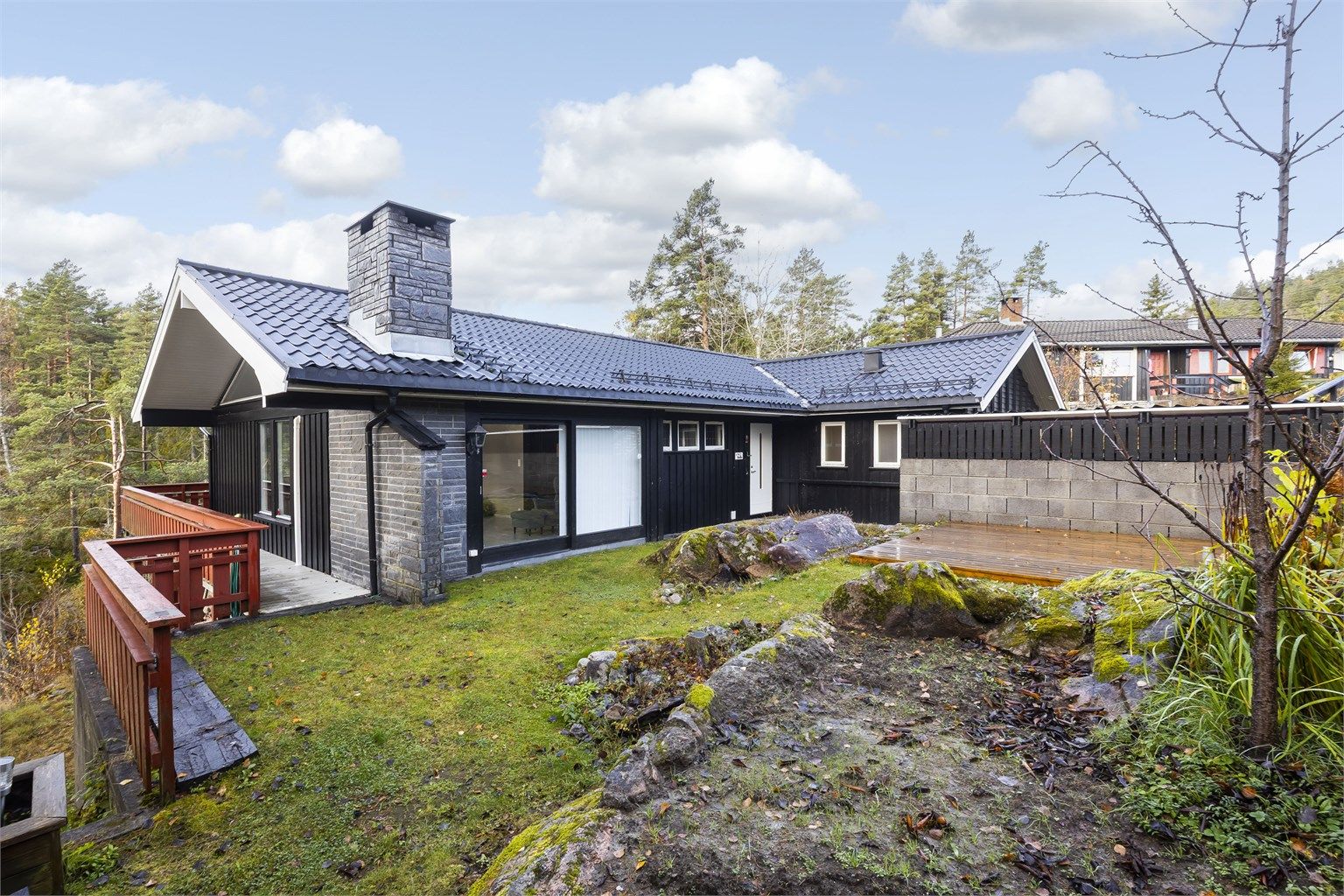 Hubrovegen 35 er en arkitekttegnet og meget romslig enebolig som har en meget attraktiv beliggenhet innerst i blindvei på Gulset. Her er det svært kort vei til Åletjern og øvrige turområder fra eiendommen.