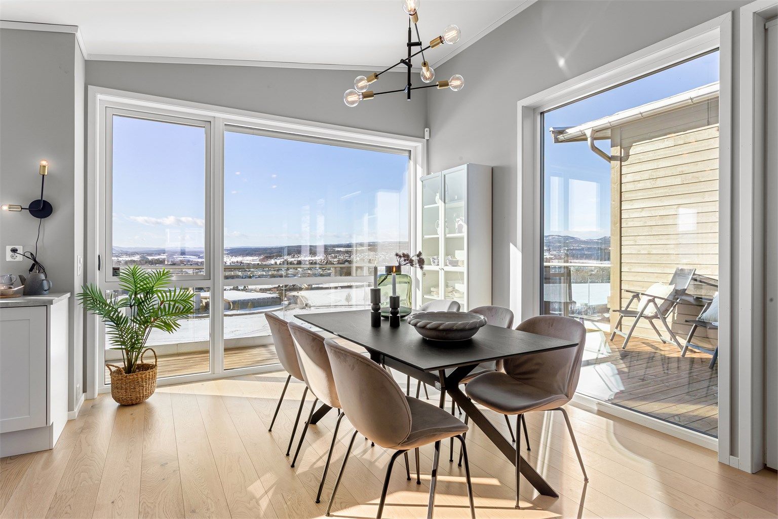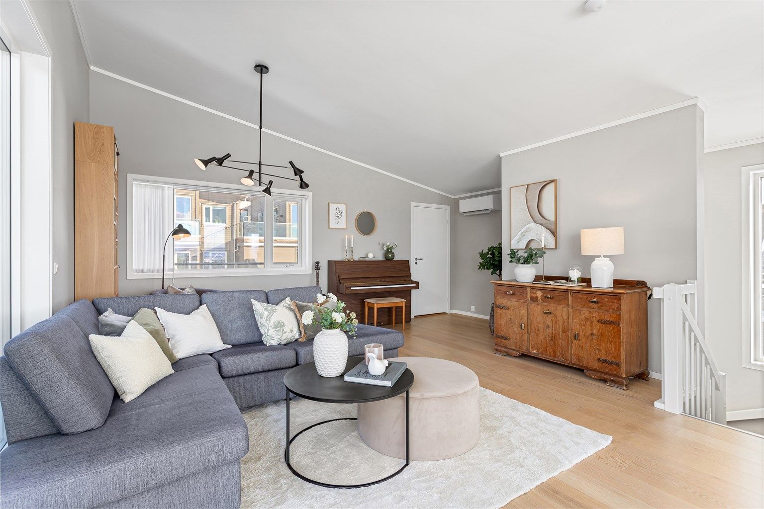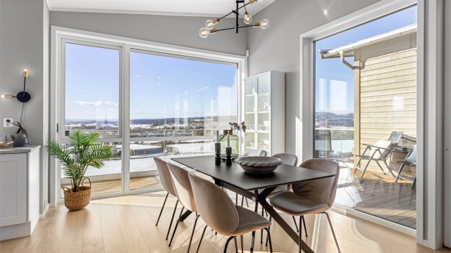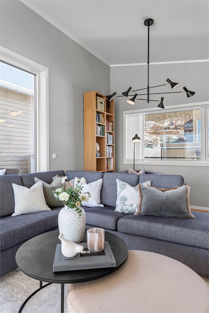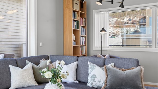 - Lys stue med store vindusflater og flott utsikt