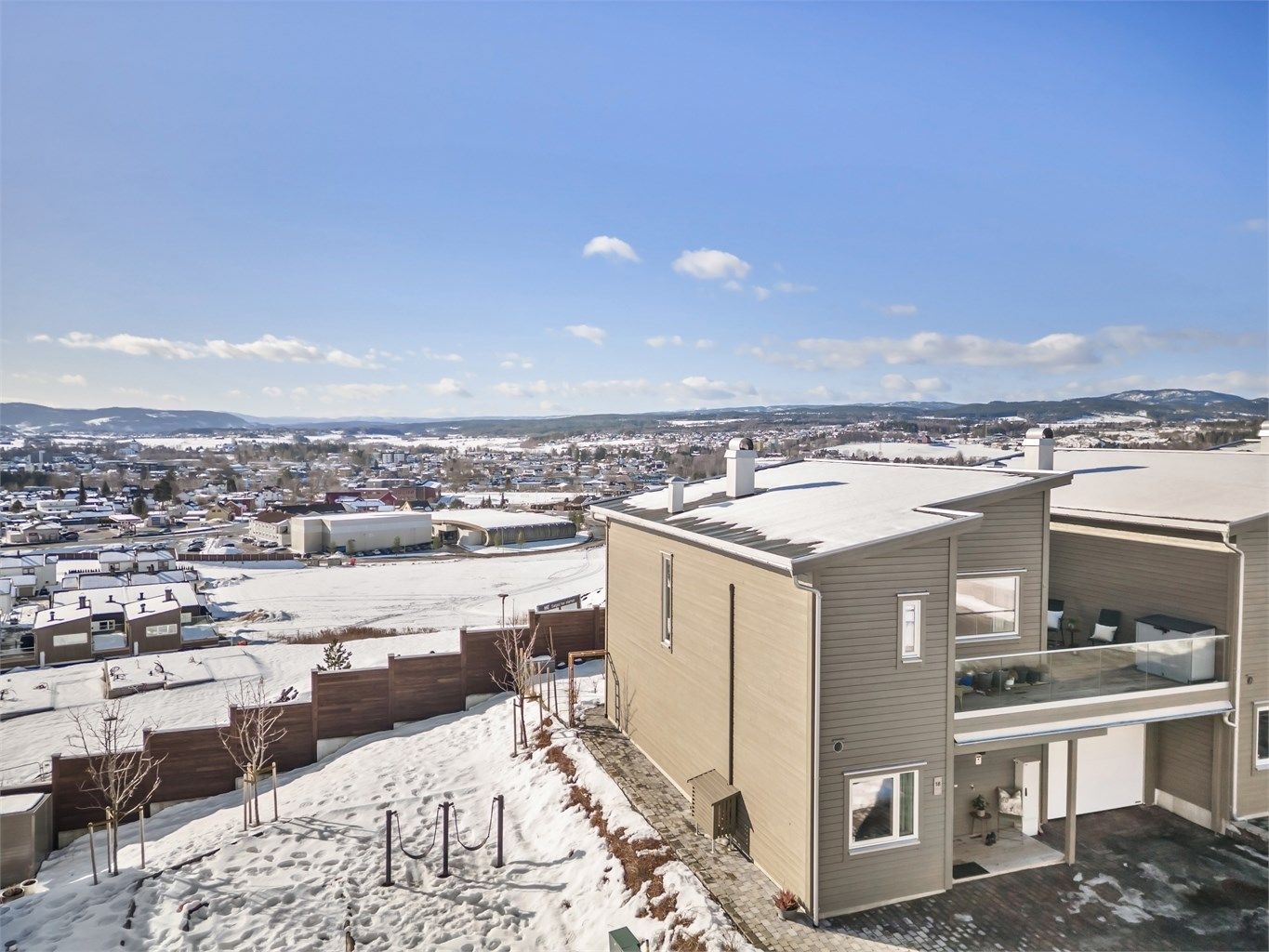 Lekker og nyere, kjedet enebolig med flott utsikt. Attraktivt område med kort vei til marka