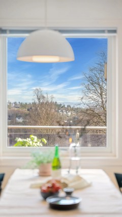 Leiligheten går over tredje og fjerde etasje, og har en god planløsning bestående av vindfang, to soverom, baderom, stue og kjøkken i hovedetasjen, og loftstue, soverom og baderom i øverste etasje. Ved hovedetasjen har du en solrik, sydøstvendt balkong hvor late dager kan nytes. Praktisk bod i kjelleretasjen og garasjeplass.