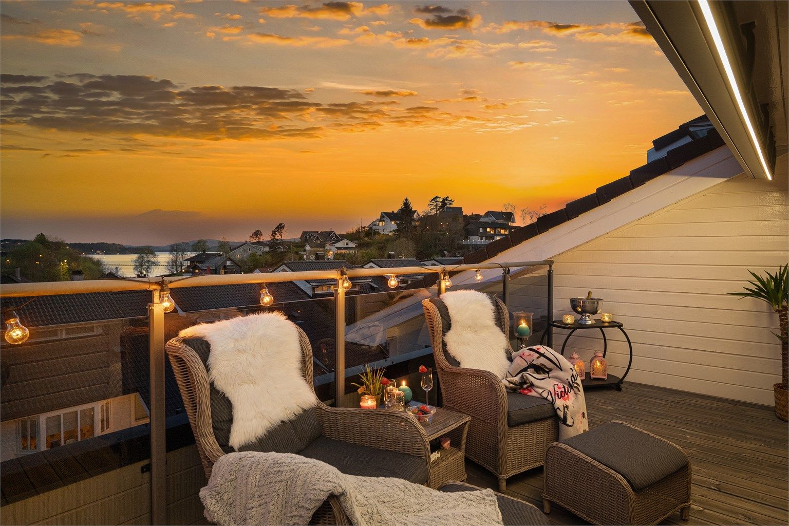 Takterrasse med herlig sjøutsikt.