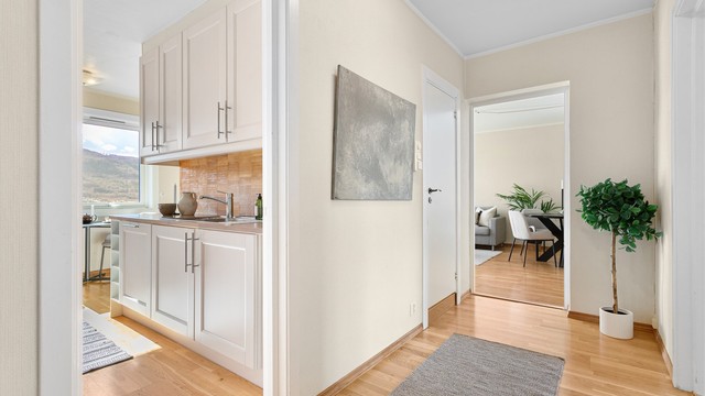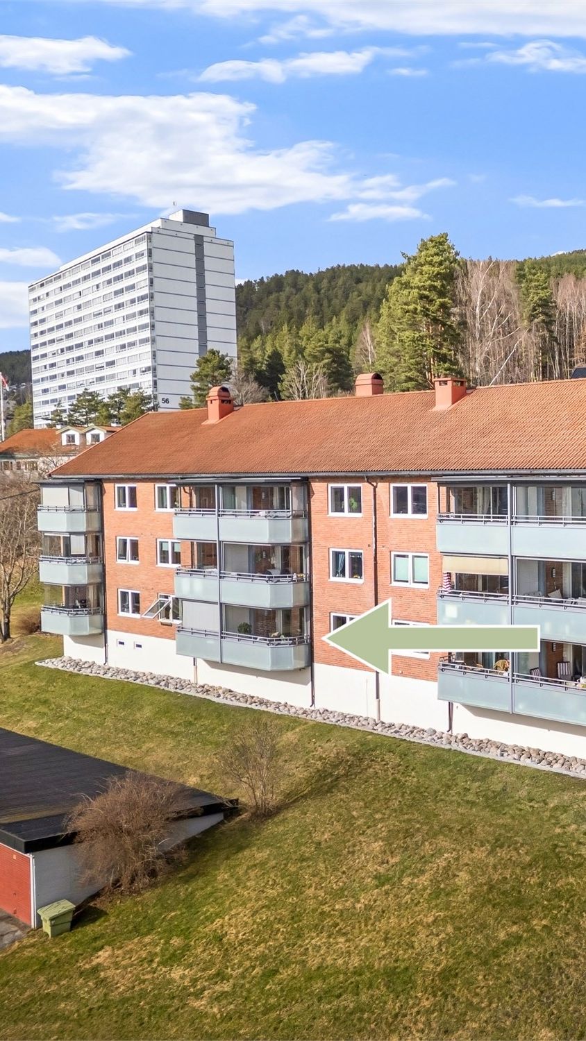Leilighet med beliggende i et veletablert boligområde med kort vei til turområder. Leiligheten ligger i en høy 1. etasje med trappeadkomst til leilighetens etasjeplan. Leiligheten disponerer to boder i kjeller og en i loftetasjen.