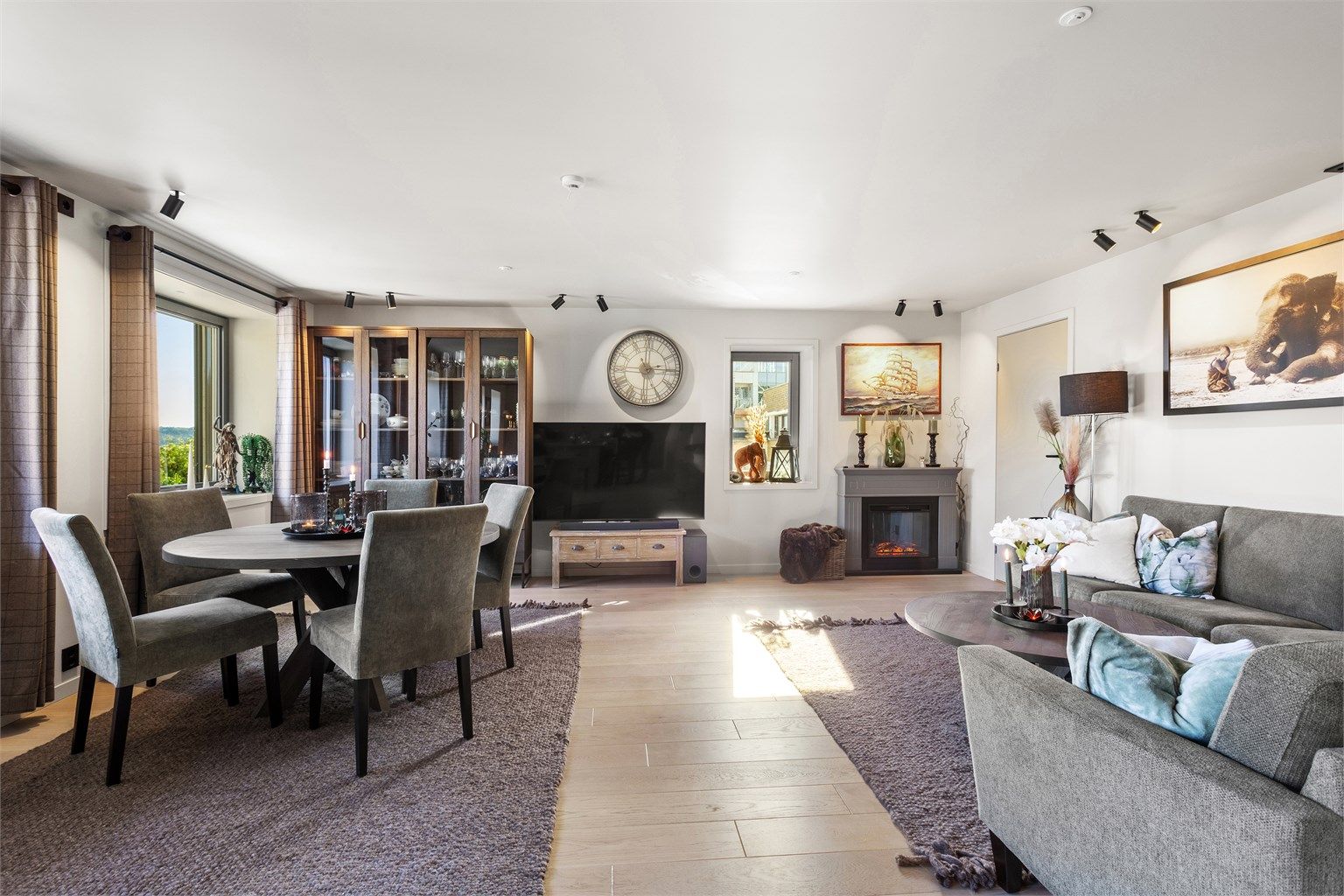 Kjøkken: Delikat Kvik-kjøkkeninnredning fra 2023 med helintegrerte hvitevarer. Over- og underskap samt høyskap i glatt utførelse. Tilsvarende utførelse på en praktisk kjøkkenøy med barløsning. Kjøkkenplater på vegg over laminert benkeplate. Lysarmaturer under overskap. Videre er kjøkkenet utstyrt med mikrobølgeovn i høyskap, stekeovn i høyskap, oppvaskkum av kompositt, oppvaskmaskin, kjøle-/fryseskap, platetopp i kjøkkenøy og komfyrvakt i himling. Varmekabler i gulv. 1-stavs parkett på gulv, malte vegger og malt himling. Utgang til overbygget østvendt veranda på ca. 14 kvm med flislagt dekke (løse), utvendig belysning og strømuttak. Verandaen har utsikt mot sjøen.