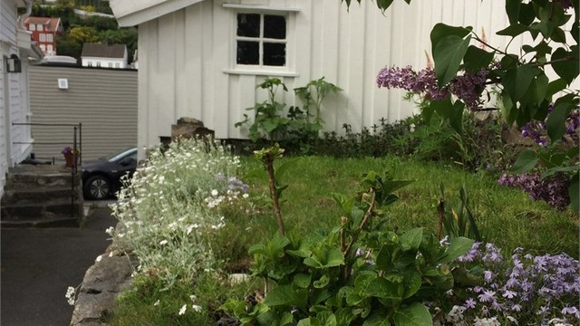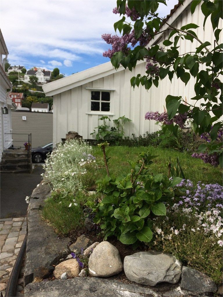 Eiendommen har en usjenert hage og bakgård som kan brukes både som hage og parkering, samt en solrik veranda.