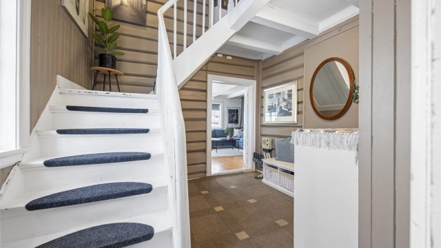 Kirkebakken 6 er en sjelden mulighet på Tyholmen, en historisk og særpreget bolig som kombinerer klassisk sørlandsidyll med romslighet, utsikt og en helt spesiell atmosfære. Her bor du høyt og fritt med flott overblikk over byens tak og innseilingen, samtidig som du har umiddelbar nærhet til alt Arendal sentrum har å by.