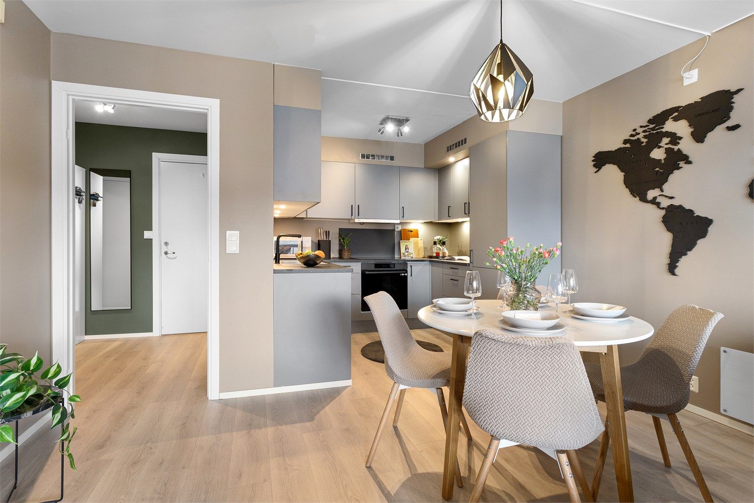 Leiligheten har en gjennomgående moderne og innbydende utførelse
