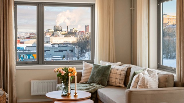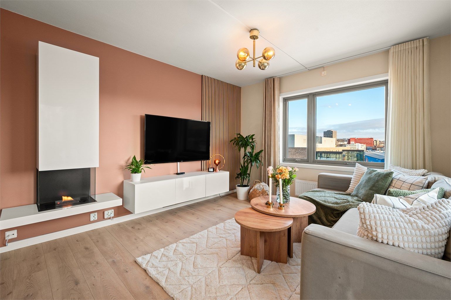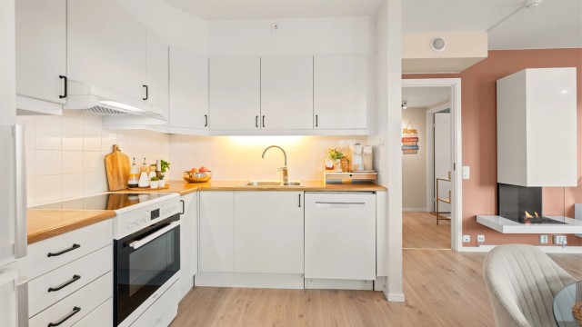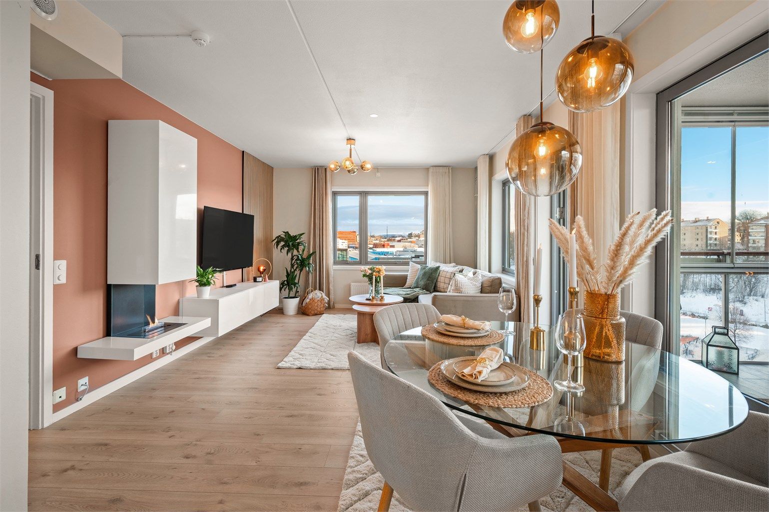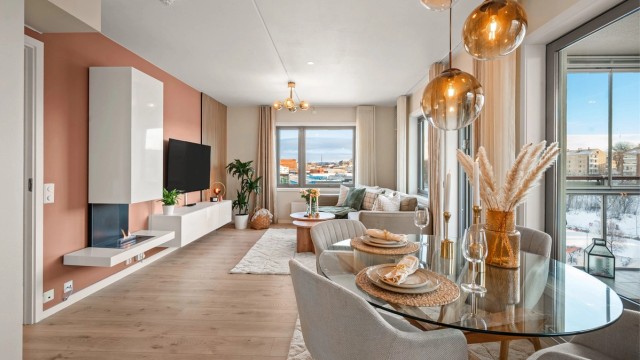 Lys & innbydende 3R hjørneleilighet m/garasjeplass, balkong og heis. Fjernvarme og internett inkl. Felles takterrasse.
