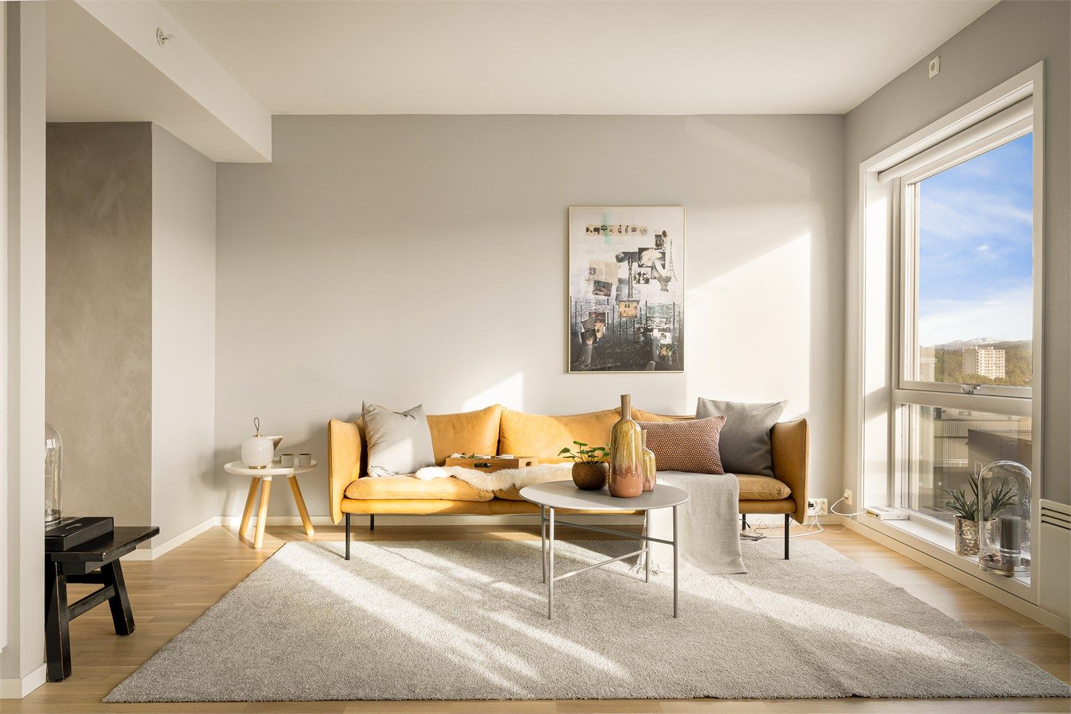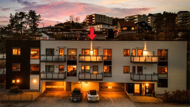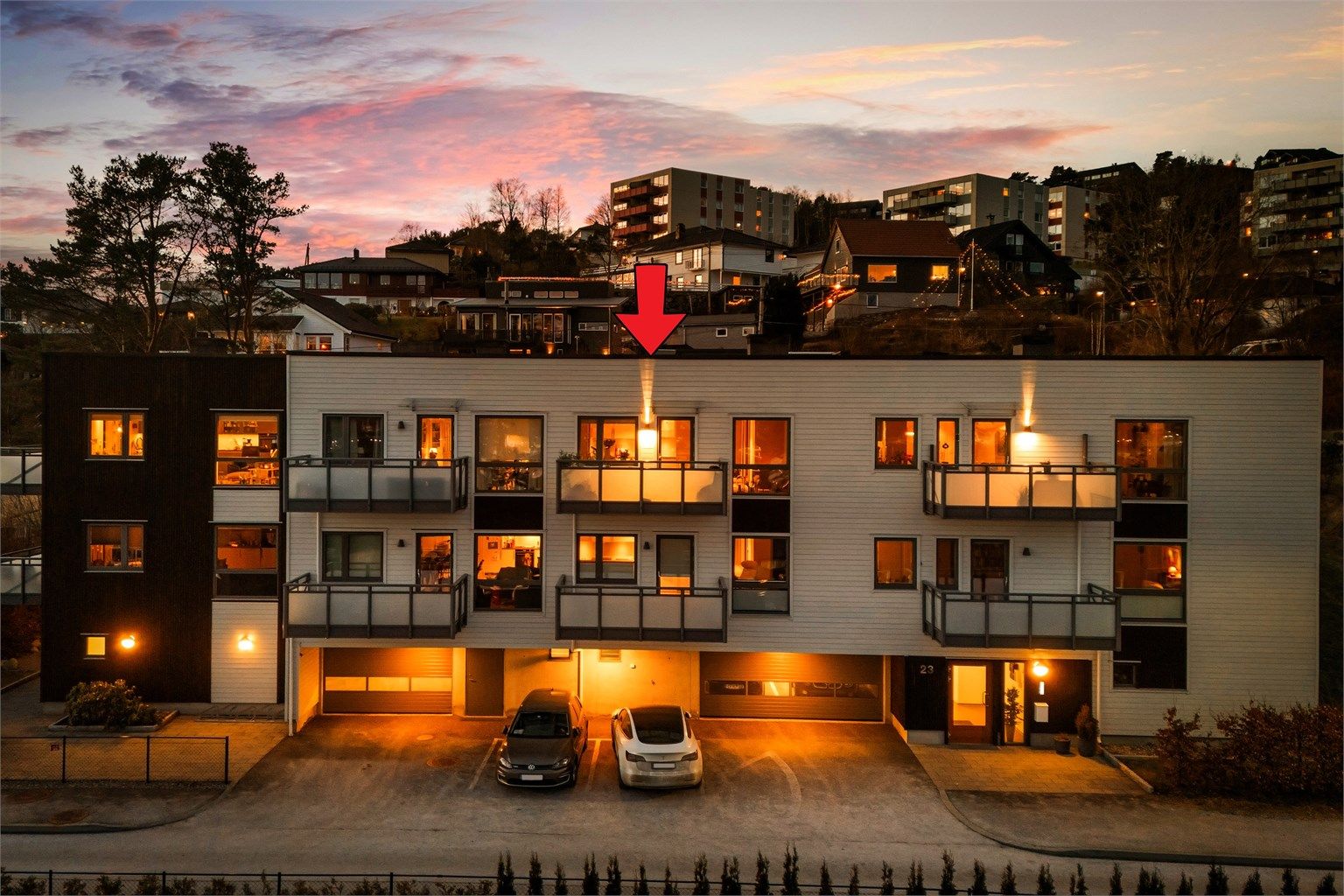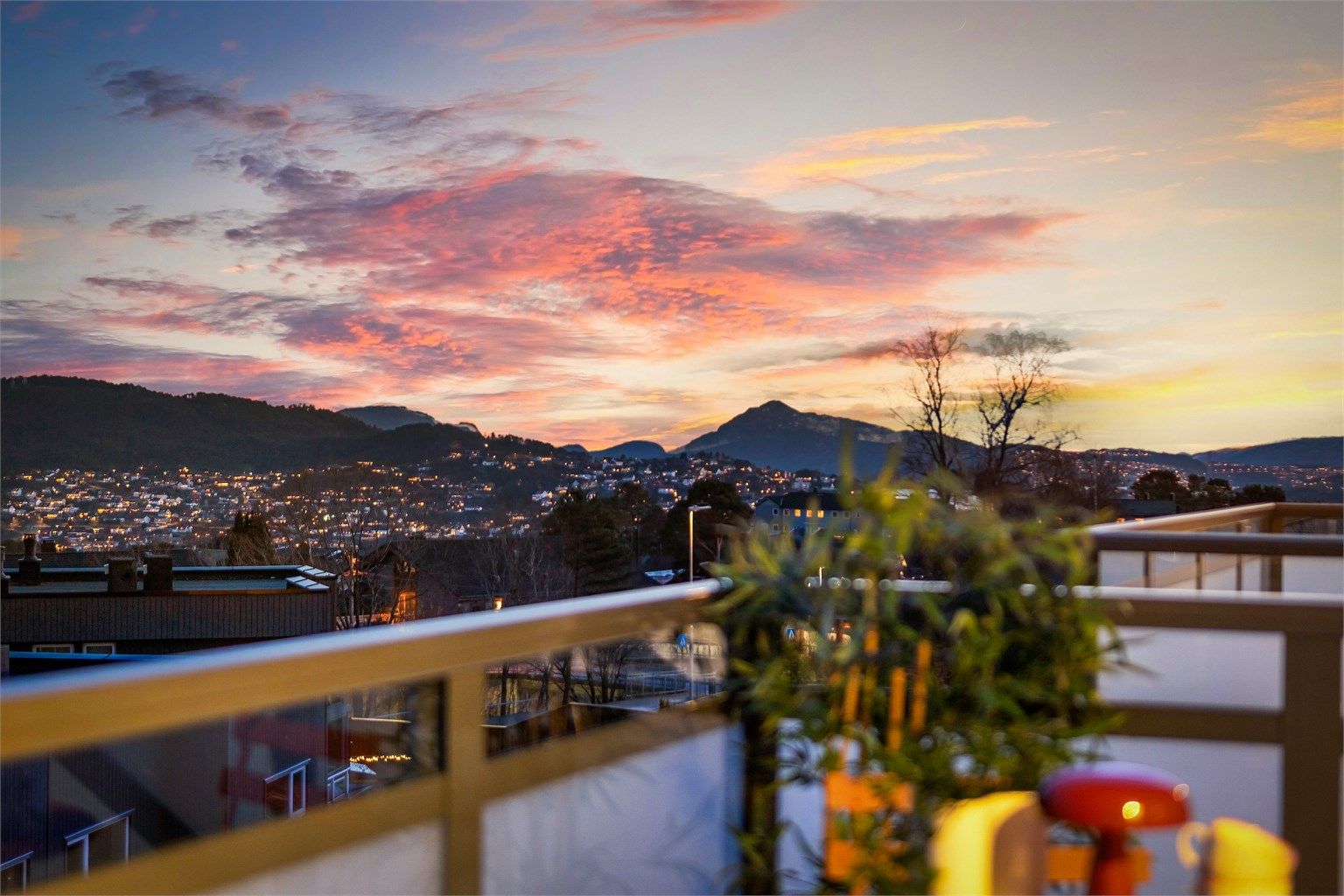 Lekker toppleilighet i moderne bygg fra 2019 | Spektakulær utsikt | Solrik altan | Garasje | Heis | Meget sentralt