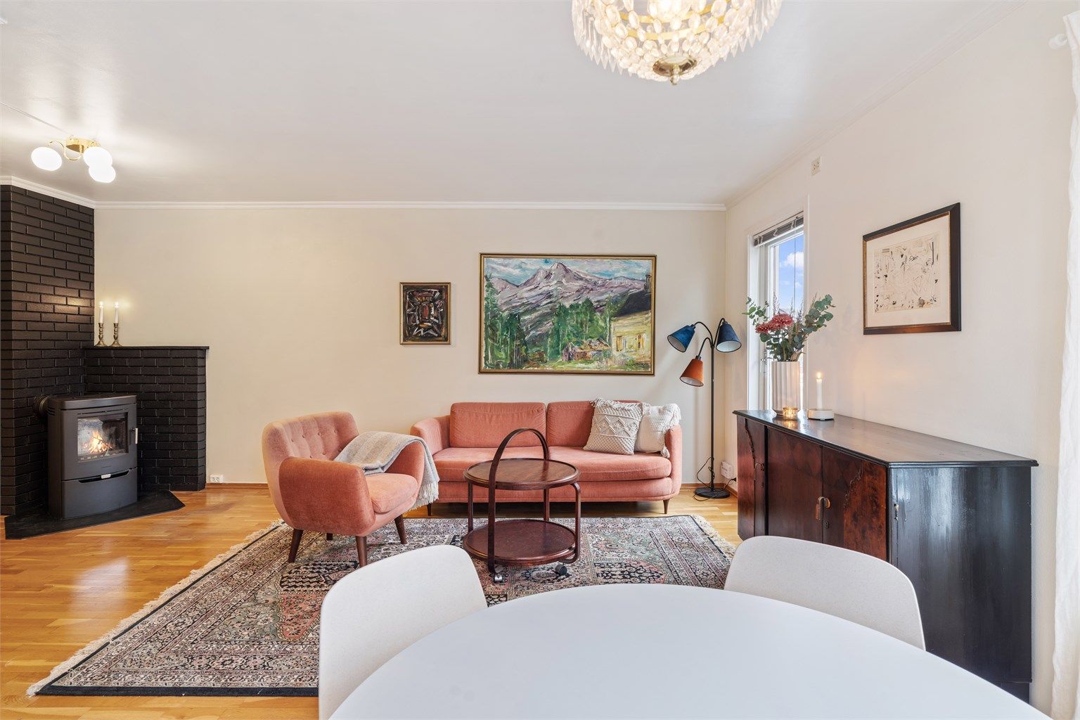 Åpen og sosial løsning mellom stue og kjøkken