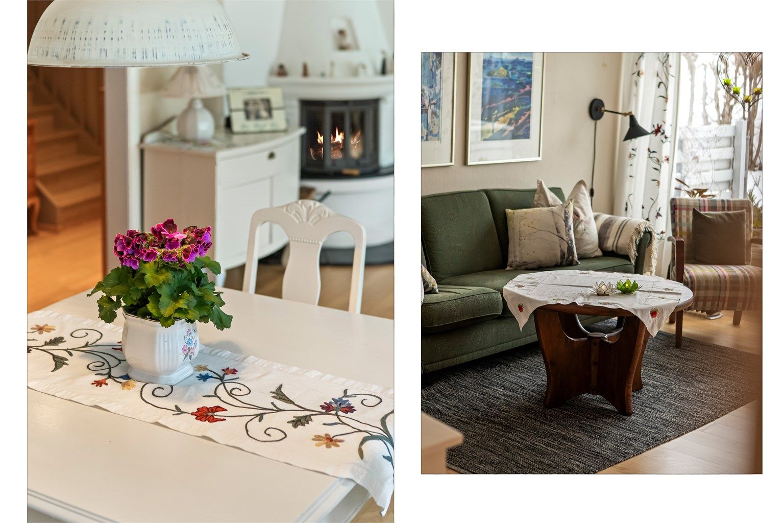 * Innredet med bla. entrè, toalettrom, pent Ikea kjøkken med hvit profilerte fronter og integrerte hvitevarer, koselig stue med plass til både salong og spisestue, 3 soverom og flislagt bad. Kjelleren er innredet med kjellerstue (ikke godkjent til varig opphold), vaskerom og boder