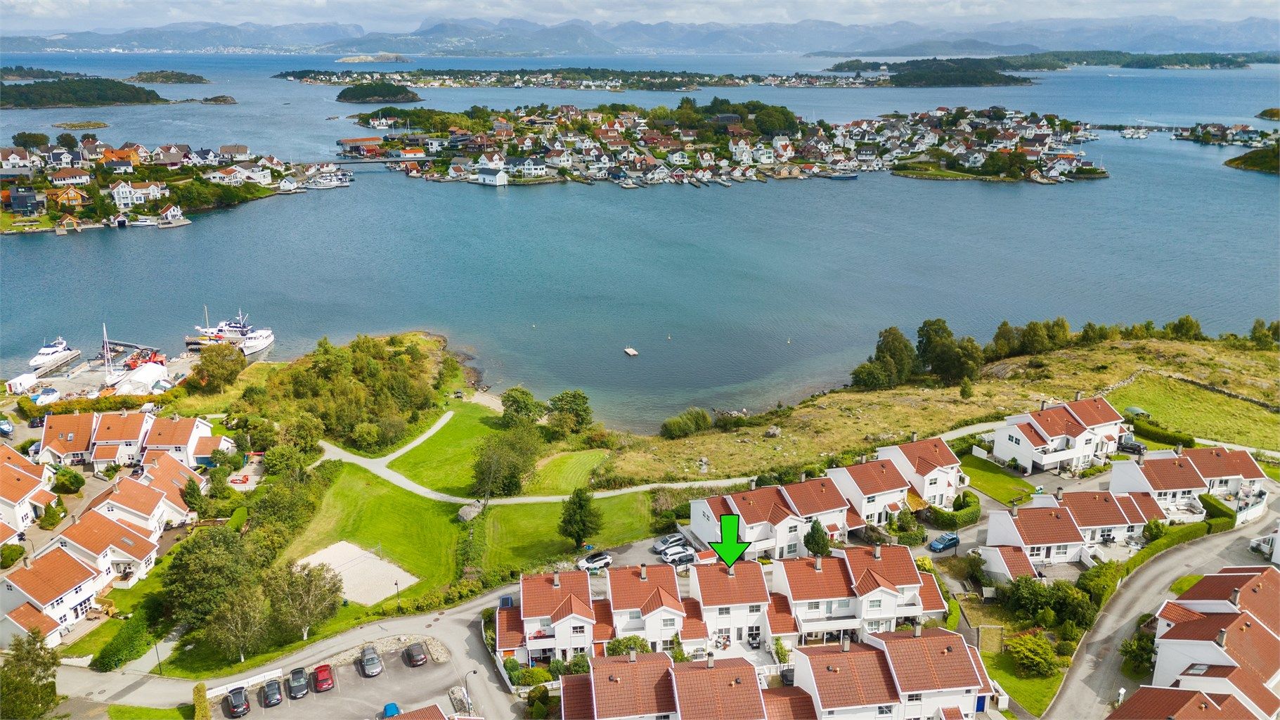 Tiltalende kjedet enebolig over to plan på solrik tomt med kort avstand fra Kuvika og badestrand. Boligen har integrert garasje og nydelig, lettstelt uteareal med gode solforhold.