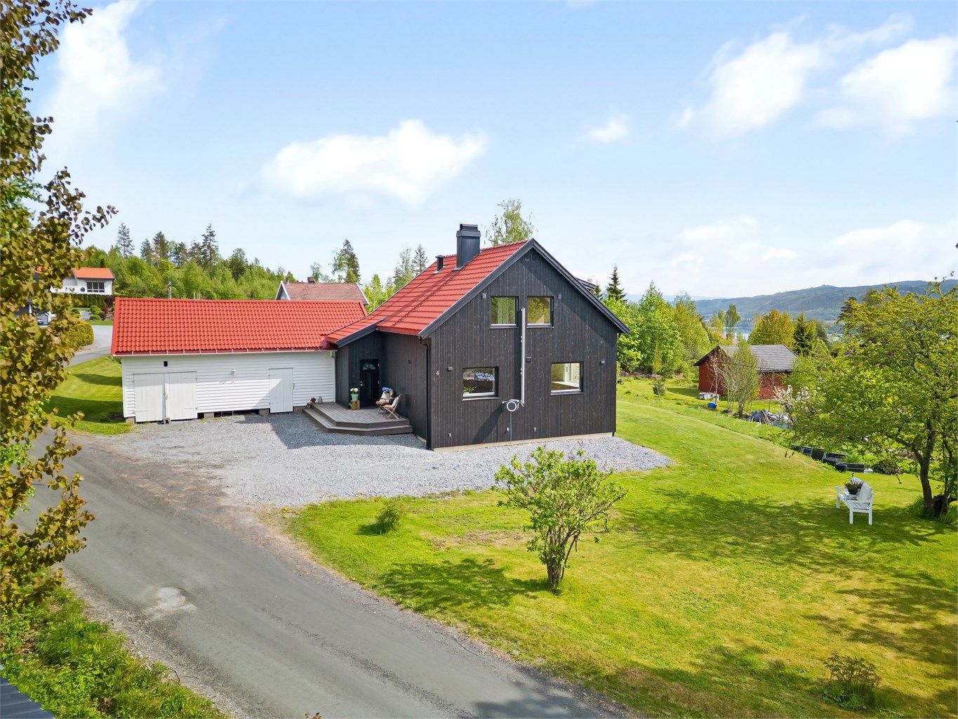 Innholdsrik enebolig med sidebygning/garasje og 1,6 mål solrik tomt med utsikt mot Fiskumvannet