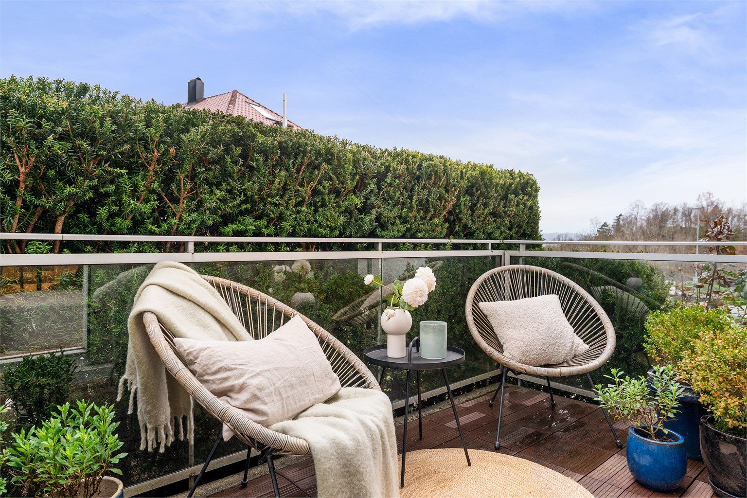 Tilbaketrukket og lun balkong.