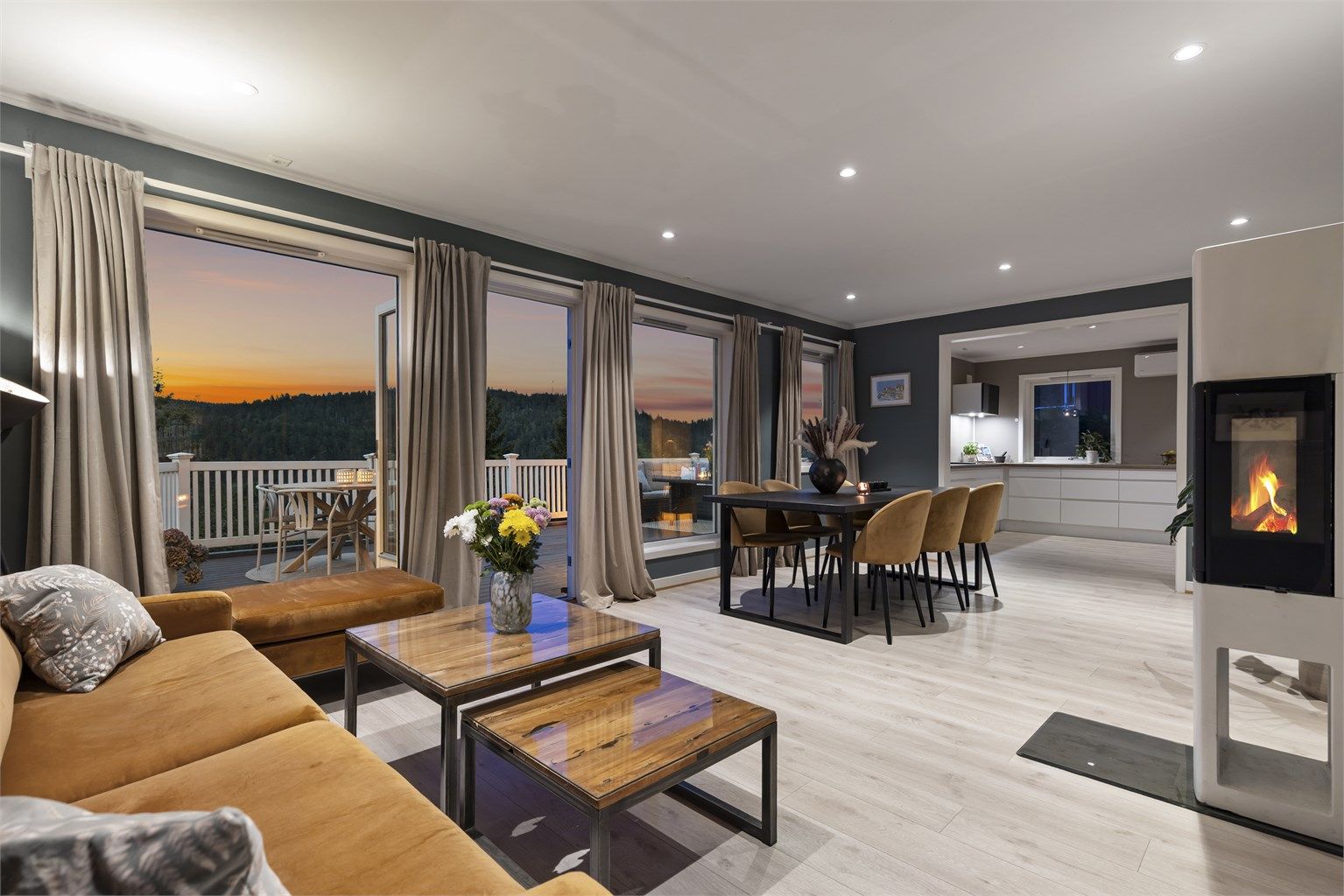 Eiendommen ligger høyt og fritt på Petterstua i Sætre, med utsikt til naturskjønne omgivelser. Tomten er pent opparbeidet med flotte uteområder, og boligen har god planløsning. Her får du fire store soverom, to i 2. etg. og to i u.etg. 1. etg. er det sosiale oppholdsstedet for hele familien, med luftig kjøkken og stue i ett og utgang til stor terrasse.