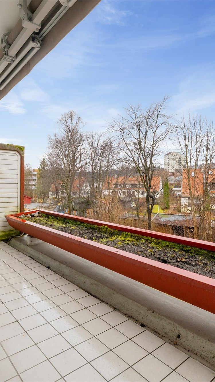 Dette er en stor, lys og gjennomgående leilighet i høy 1. etasje med trappefri adkomst. Attraktiv beliggenhet på Skøyen, men samtidig tilbaketrukket og god intern beliggenhet i grønne omgivelser. Sentralt med gangavstand til "alt". Fra eiendommen er det turstier direkte inn i Den Engelske Park som fører til Frognerparken. Bilfrie gangveier helt til Majorstuen og ca. 7 min gange til knutepunkt på Skøyen med flytog/lokaltog, buss og trikk. Kort, bilfri gangavstand til Skøyen skole.
