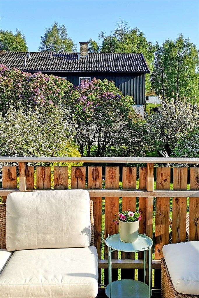 Halvpart av tomannsbolig med balkong og idyllisk hage. Rolig og trafikkskjermet beliggenhet. Sentralt og barnevennlig