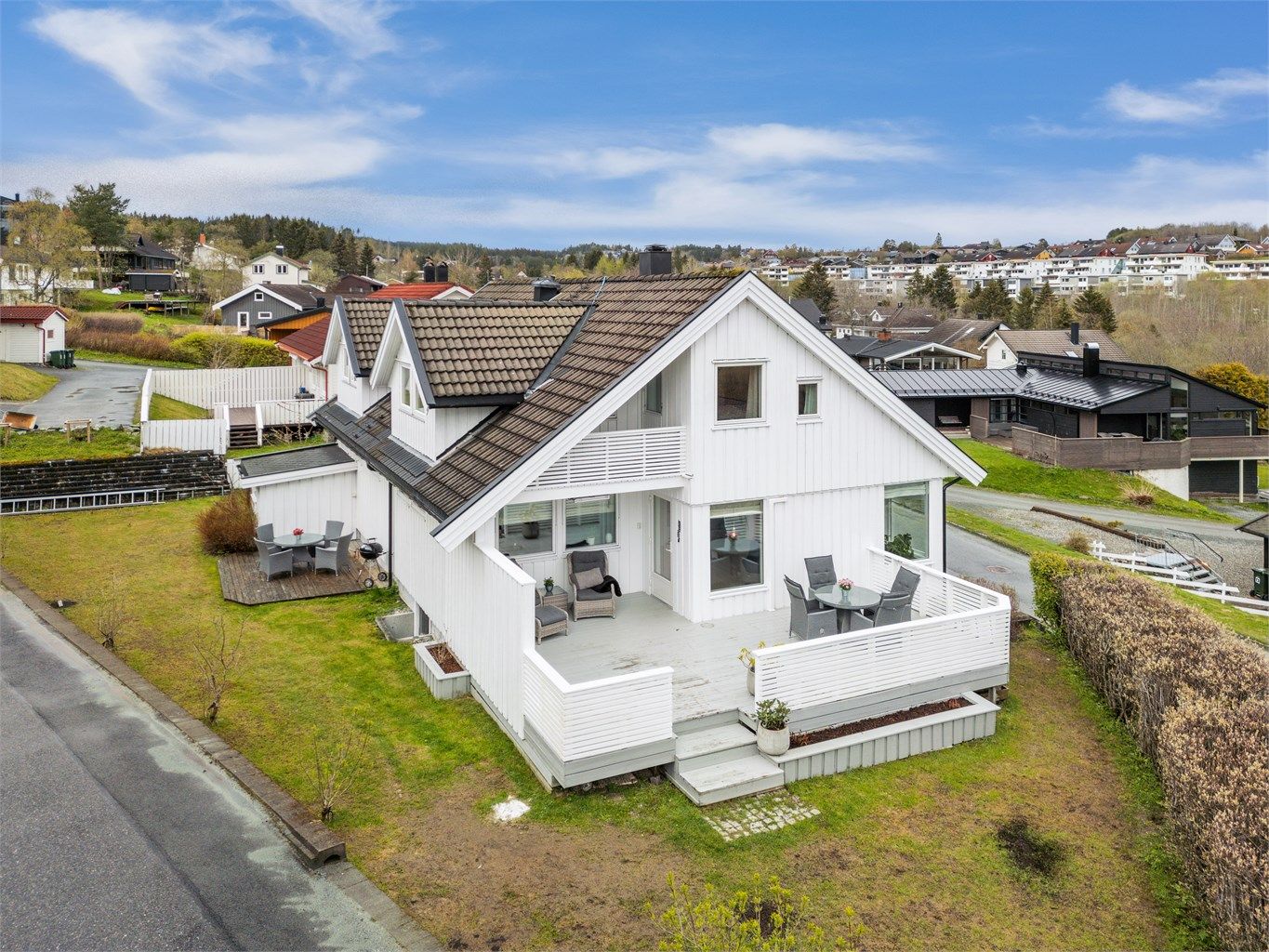 Eiendommen ligger i en rolig blindvei med flott utsikt og god beliggenhet. Store vinduer vender mot utsikten, og en lun veranda i retning sør gir gode solforhold med utsikt.