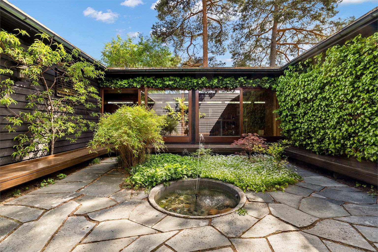 Velkommen til Sponstuveien 46, et unikt arkitekttegnet atriumhus.