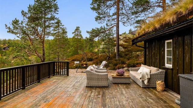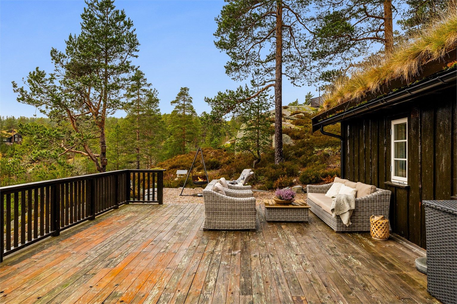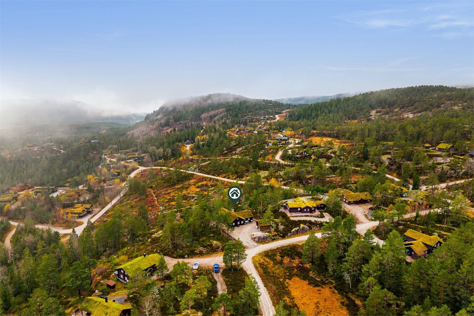 525 meter over havet, under 1,5 timers kjøring fra Grenland og 2 timer fra Kristiansand, ligger denne hytta usjenert til med god avstand til naboer og sol fra tidlig morgen til sent på kveld. Herfra er det nydelig utsitkt utover landskapet og ned mot Bjønntjønn. Bare noen steinkast unna finner vi mil etter mil med preparerte skiløyper, turstier og blankskurte svaberg langs en bekk, her er det veldig fint å bade om sommeren. Der er også mye blåbær, tyttebær og sopp i nærområdet. Her finnes fine fiskevann og mulighet for padling med kano eller kajakk. I nærområdet er det mange fine sykkelstier og Norøna Canvas, et Villmarks-Spa ligger bare noen få kilometer unna. Jettegrytene sør i Nissedal er kjent som naturens eget badeland, dit er det ca. 50 minutter med bil. Treungen er nærmeste tettsted og ligger bare 10 kilometer unna. Nisser med kilometerlange sandstrender er heller ikke langt unna, også her er det fine turstier langs innsjøen. Treungen er ei koselig bygd med spisesteder, diverse butikker og bensinstasjon. På Gautefall er det alpinsenter, Ski Lodge og lysløype, dit er det ca. 10 minutter med bil. Hver sommer arrangeres Treungfestivalen med et rikholdig program og mange kjente artister. Hytteeierne i området har egen hytte- og velforening som jobber for tilrettelegging av bedre turstier og er felles talerør ift. kommune og grunneiere.